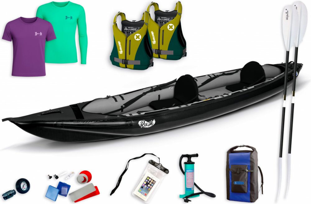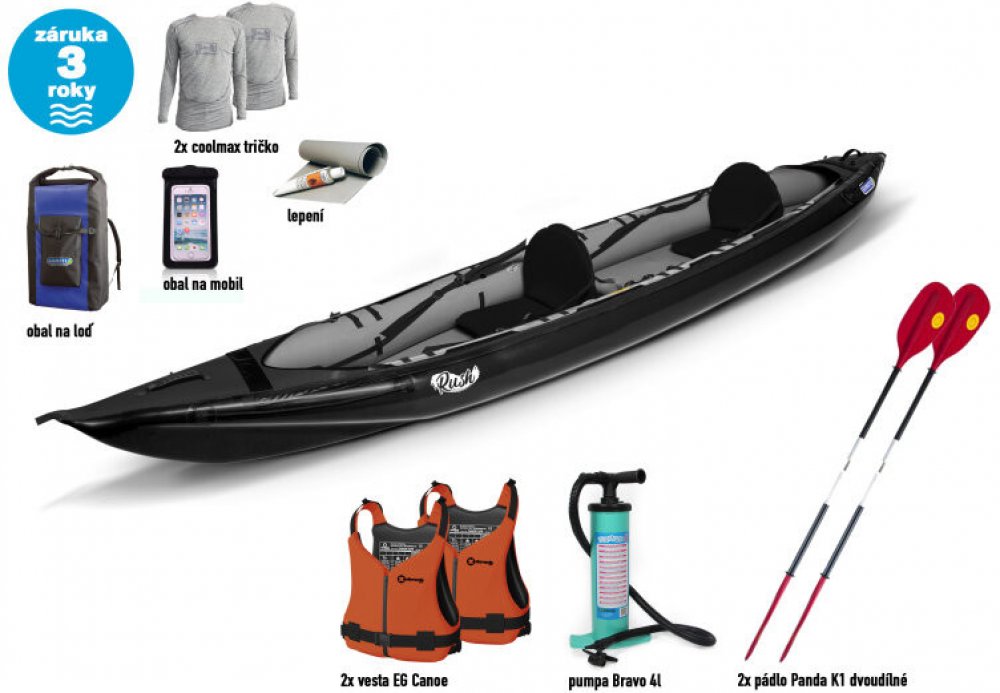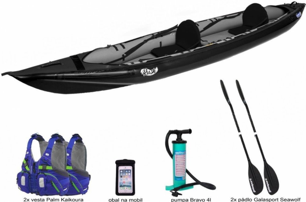 Rush 2 - délka člunu 420 cm: Kajak pro dva s vysokou rychlostí a stabilitou, ideální pro vodácké závody a dlouhé výlety.