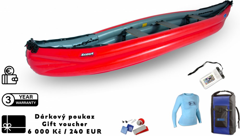 Gumotex Scout Standard je unikátní nafukovací kánoe, která kombinuje výhody nafukovacích a pevných lodí. Díky výztužnému systému T-BONES dosahuje výjimečné tuhosti a jízdních vlastností blízkých laminátovým plavidlům. Kánoe je určená pro náročné uživatele – rodiny, dobrodruhy i rybáře – kteří potřebují prostor, rychlost, stabilitu a vysokou nosnost v jednom.