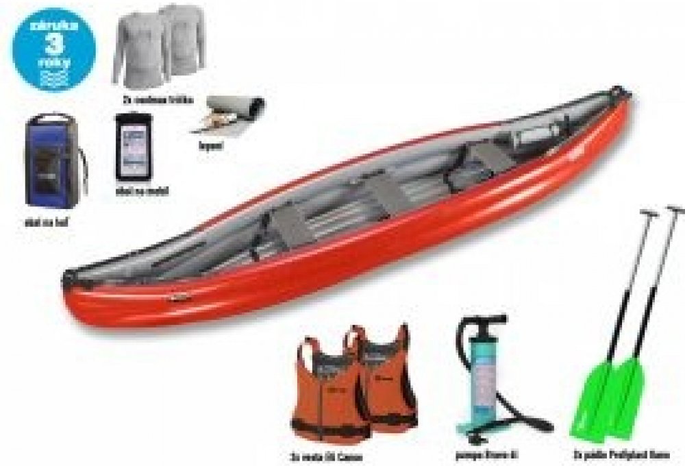Gumotex SCOUT standart je nafukovací kánoe tvarem připomínající klasické-laminátové nebo plastové kánoe, kde příď lodi rozráží vodu a snižuje tím odpor při plavbě. Scout standart SET s vybavením a s komfortní výbavou, dále nabízí obrovsky vnitřní prostor, vysokou nosnost, výborné jízdní vlastnosti a rychlost na klidné i divoké vodě (do WW3). Loď vhodná pro dobrodruhy při vícedeních cestách s bagáž...
