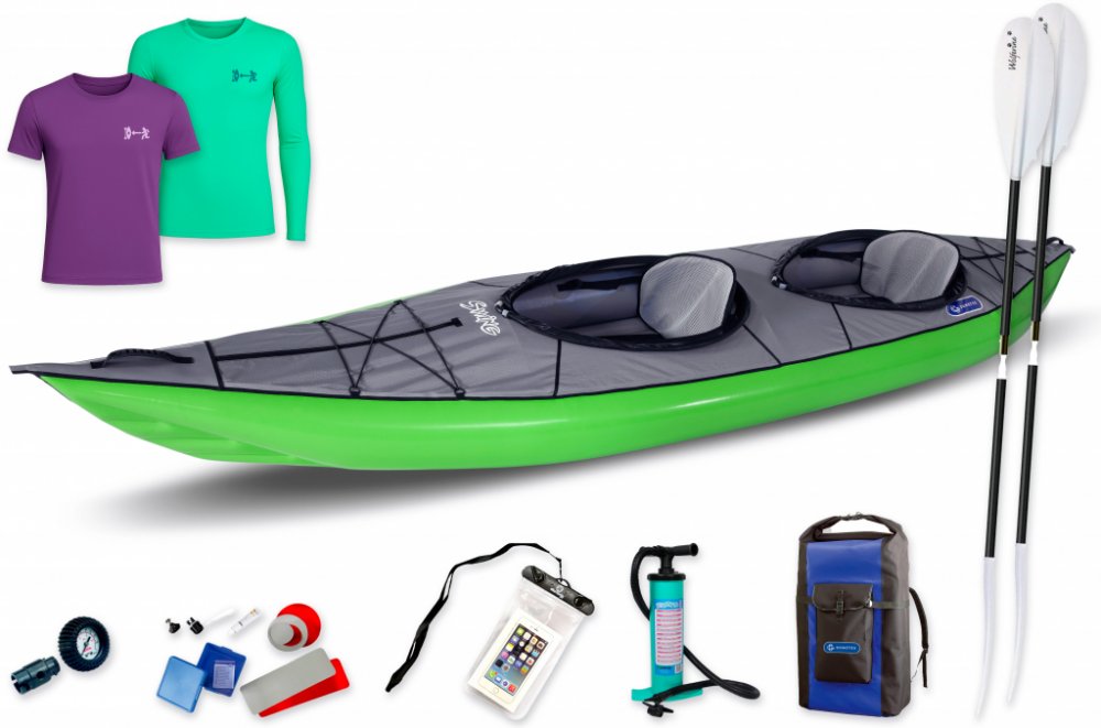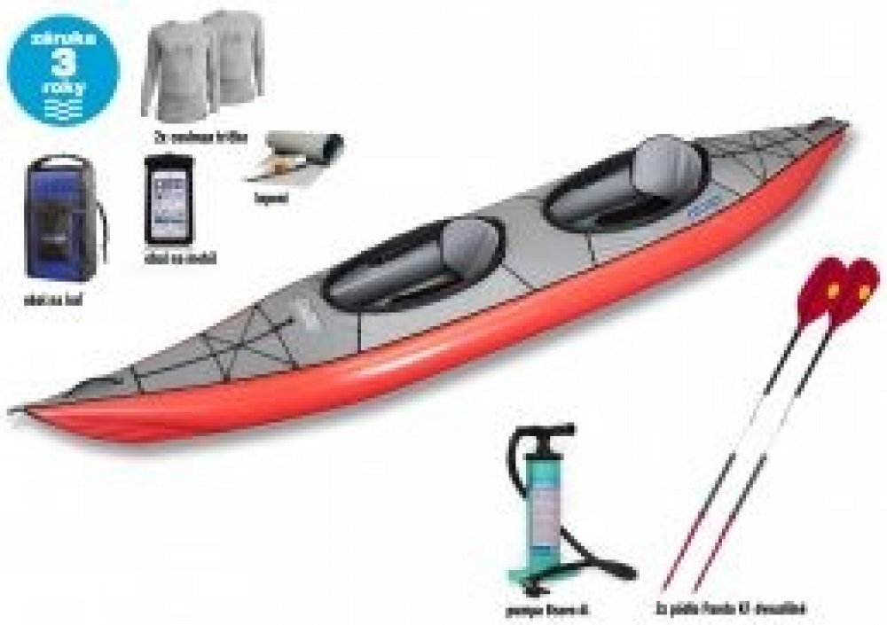 V ceně: kajak Gumotex Swing 2 N + 2x pádlo TNP 2.díl + pumpa Bravo 4l s manometrem + obal na mobil EG + vodotěsný transportní obal + sada lepení ! Nafukovací kajak SWING 2 je uzavřený kajak vhodný k rekreačním vyjížďkám a aktivnímu trávení volného času na proudících řekách (až do stupně WW2), jezerech a mořských zátokách. Kajak má systém výztuh, který mu dodává požadovanou tuhost pro snadnou ovlad...