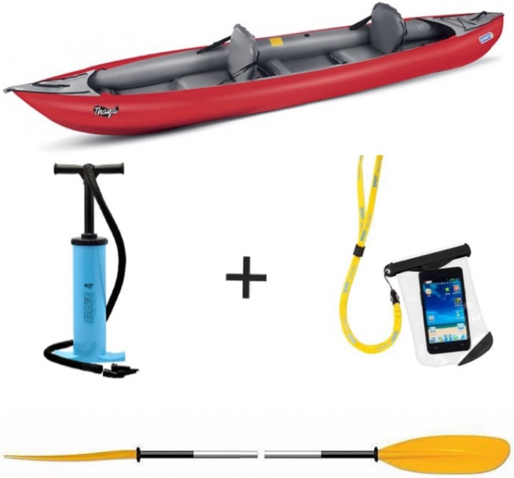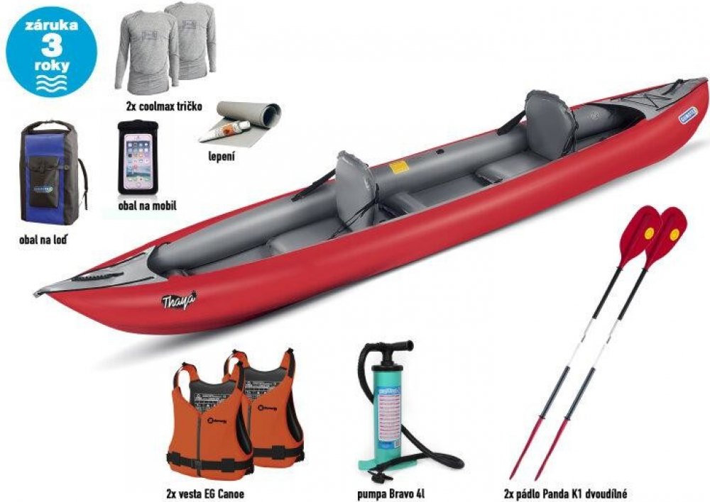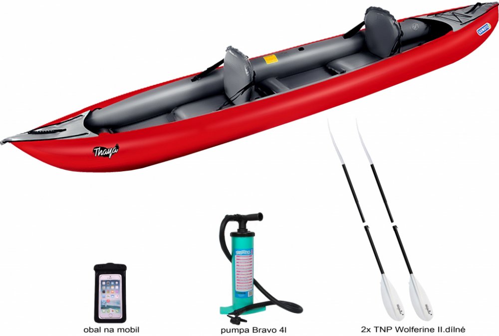 Kajak Thaya je dodáván se dvěma sedačkami. Třetí sedačku a přídavnou přední palubu je možné koupit zvlášť jako příslušenství.