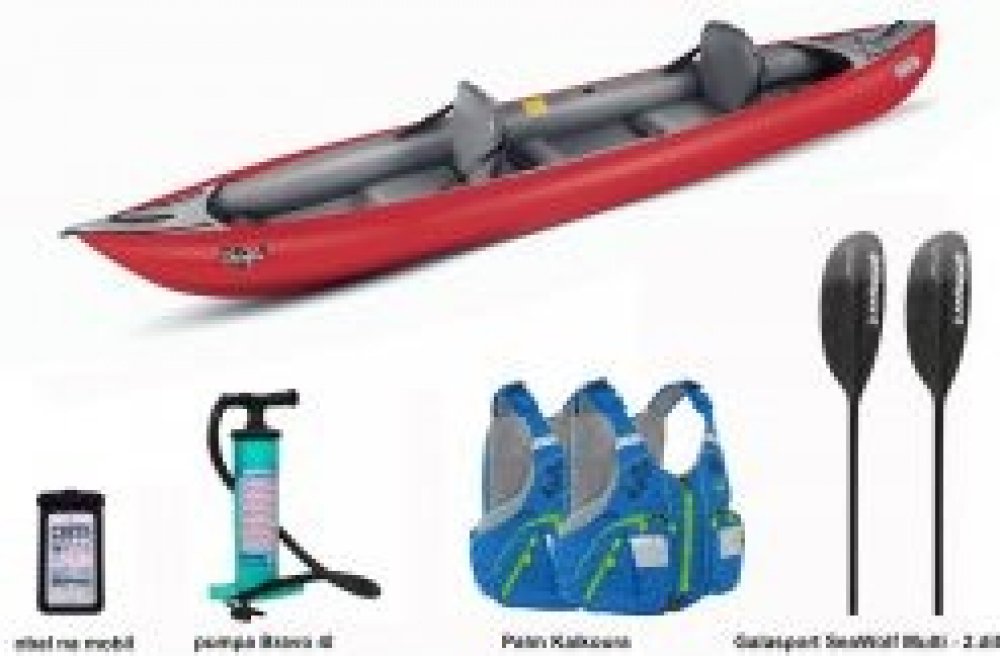 Framura - délka člunu 385 cm: Kajak pro dva s nafukovací konstrukcí a vysokou stabilitou, ideální pro klidné vody a řeky.