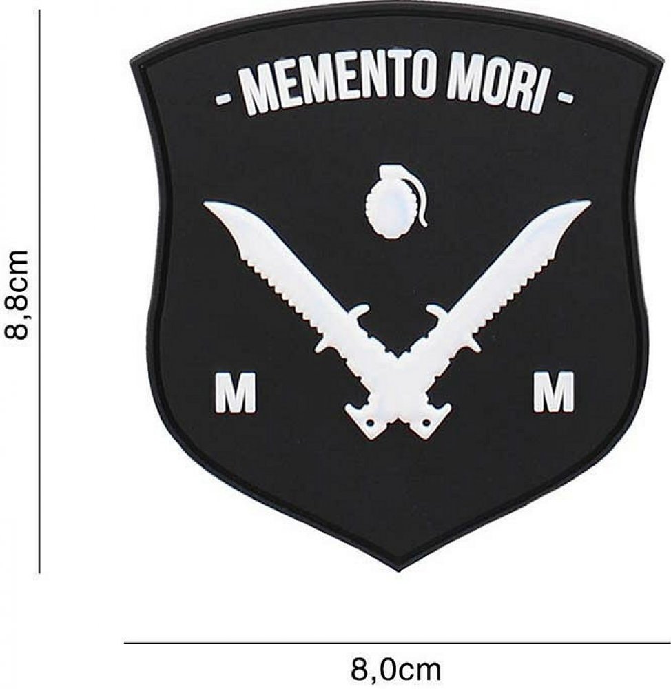 Gumová nášivka 101 Inc Memento Mori MM - černá-bílá