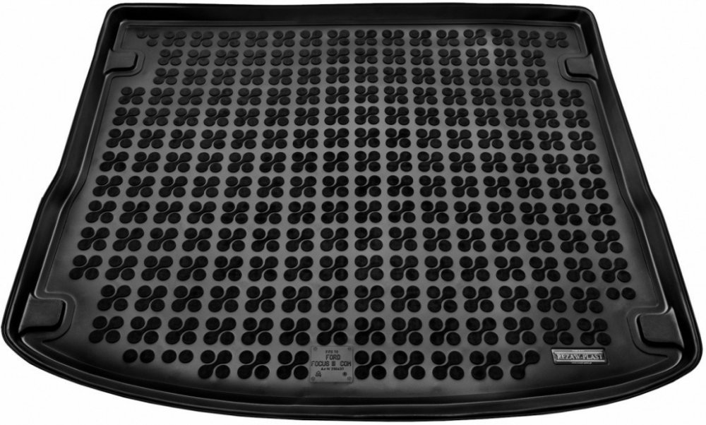 Gumová vana má přesný tvar pro vůz Ford Focus. Díky přesnému střihu vyplní zavazadlový prostor a dokonale ochrání kufr před znečištěním nebo před poškozením původního koberce.Gumové vany do kufru od výrobce Rezaw-Plast mají pro většinu modelů zvýšený okraj (3-4cm), který v případě vylitého nákladu nebo roztátého sněhu bezpečně udrží tekutinu a ochrání interiér vozu.U modelů aut, které mají dno a hranu kufru v jedné rovině, nemá hrana gumové vany směřující ven z kufru zvýšený okraj a to z toho důvodu, aby při manipulaci s nákladem zvýšený okraj nepřekážel.Povrch gumové vany má hrubou, protiskluzovou texturu, která do jisté míry brání převáženému nákladu proti samovolnému posouvání v zatáčkách.Vanu lze z kufru kdykoliv velmi jednoduše vyjmout. Údržba i čištění je pak velice snadné. Výška okraje je 3-4cm. Povrch vany do kufru má drsnou, protiskluzovou texturu.