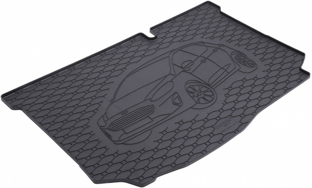 Gumový autokoberec do kufru RIGUM FORD Fiesta Hatchback 2017- Gumové vany od výrobce RIGUM jsou přesně přizpůsobeny dle tvaru daného kufru. Okraj vany je vysoký 2 cm. V případě vylitého nákladu nebo třeba roztátého sněhu bezpečně udrží tekutinu a ochrání tak interiér vašeho vozu. Povrch gumové vany již z podstaty materiálu zabraňuje klouzání a samovolnému posouvání nákladu v zatáčkách nebo při brzdění. Vanu lze z kufru kdykoliv velmi jednoduše vyjmout. Čištění a údržba zavazadlového prostoru je díky tomu velice snadná. Gumové vany značky RIGUM jsou 100% český výrobek! Výška hrany Zvýšená hrana spolehlivě zadrží vodu a nečistoty, takže neuniknou z koberce do zavazadlového prostoru. Díky gumovému koberci můžete v kufru bez obav převážet třeba stavební materiál, nádoby s tekutinami a nebo domácí mazlíčky. Protiskluzová úprava Výstupky na spodní straně gumového autokoberce zabraňují jeho posunování po podlaze. Koberce bezpečně sedí jako přibité, takže interiér vypadá stále na jedničku. Ochrana Boty od bahna, mokré podrážky, sníh nebo letní prach. S gumovými vanami do auta to vás ani podlahu vozu trápit nemusí. Vše spolehlivě zadrží tyto kvalitně a pečlivě zpracované autokoberce. Přesný střih Gumové koberce se přizpůsobují střihem konkrétnímu typu a modelu vozidla. Firma RIGUM má vlastní tým modelářů, který každý nový model pečlivě vyměří, díky čemuž autokoberec padne přesně na místo.