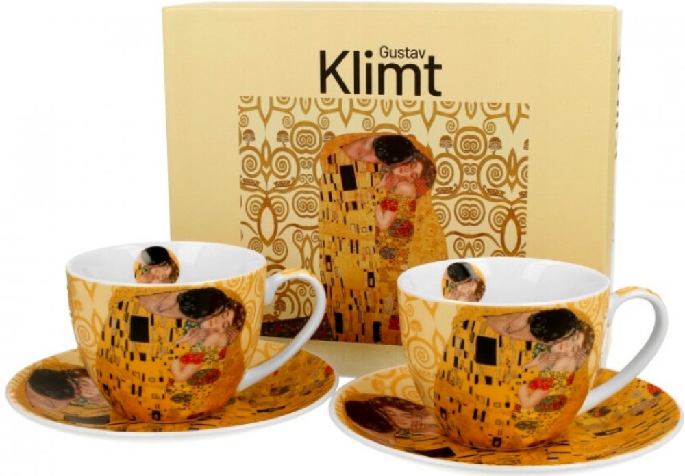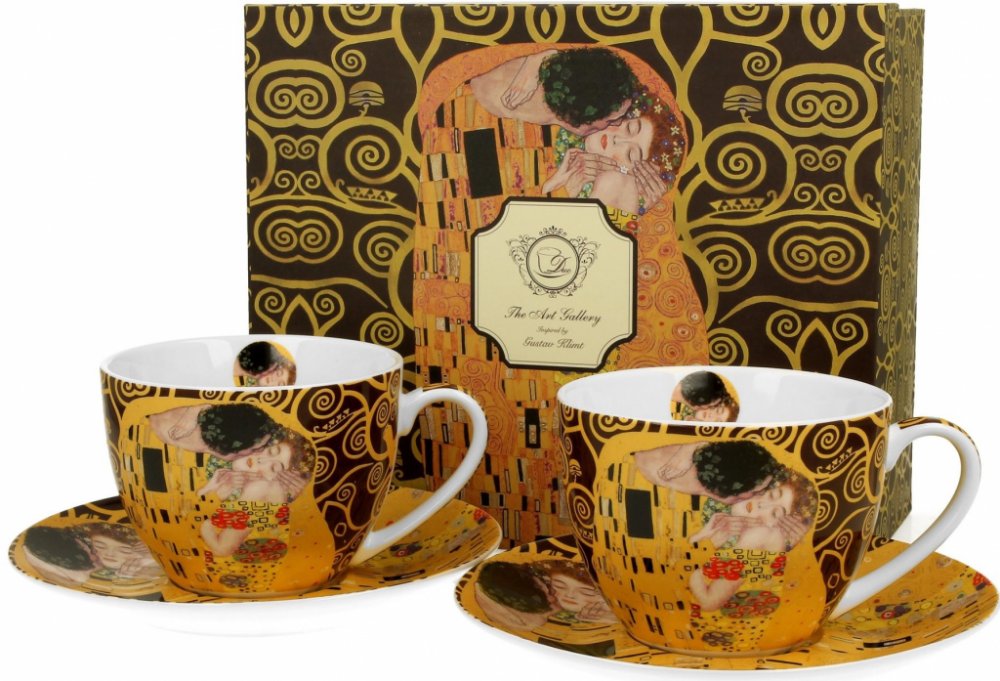 GUSTAV KLIMT DUO Porcelánové šálky na kávu a čaj s podšálky ART GALLERY THE KISS 2 x 250 ml