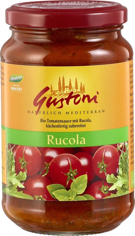 Rajčatová omáčka vyrobená z na slunci vyzrálých italských rajčat, rukoly ochucená cibulí, bazalkou a česnekem. Perfektní jako omáčka na těstoviny nebo jako dip.