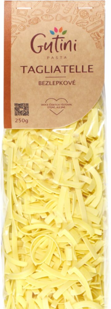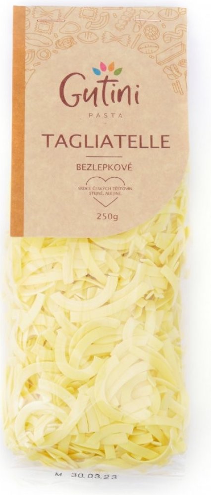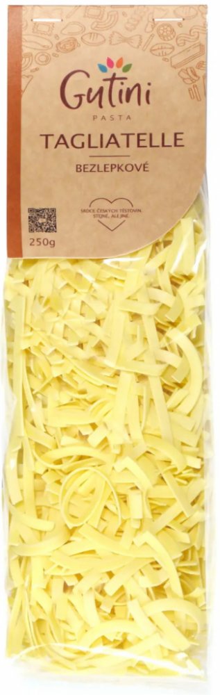 Italská elegance bez lepku i kukuřice! Těstoviny Tagliatelle od české značky Gutini jsou výjimečné svou recepturou bez kukuřičné mouky. Jemné, lehce stravitelné a chuťově téměř nerozeznatelné od klasických italských těstovin – ideální pro celiaky, diabetiky i všechny, kdo si chtějí pochutnat zdravě.