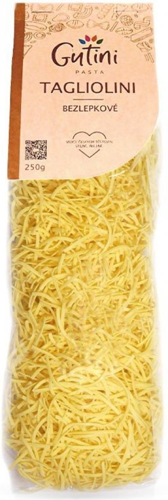 GUTINI Tagliolini bez lepku a kukuřičné mouky jsou chutné těstoviny vhodné k použití do polévky nebo studených salátů.