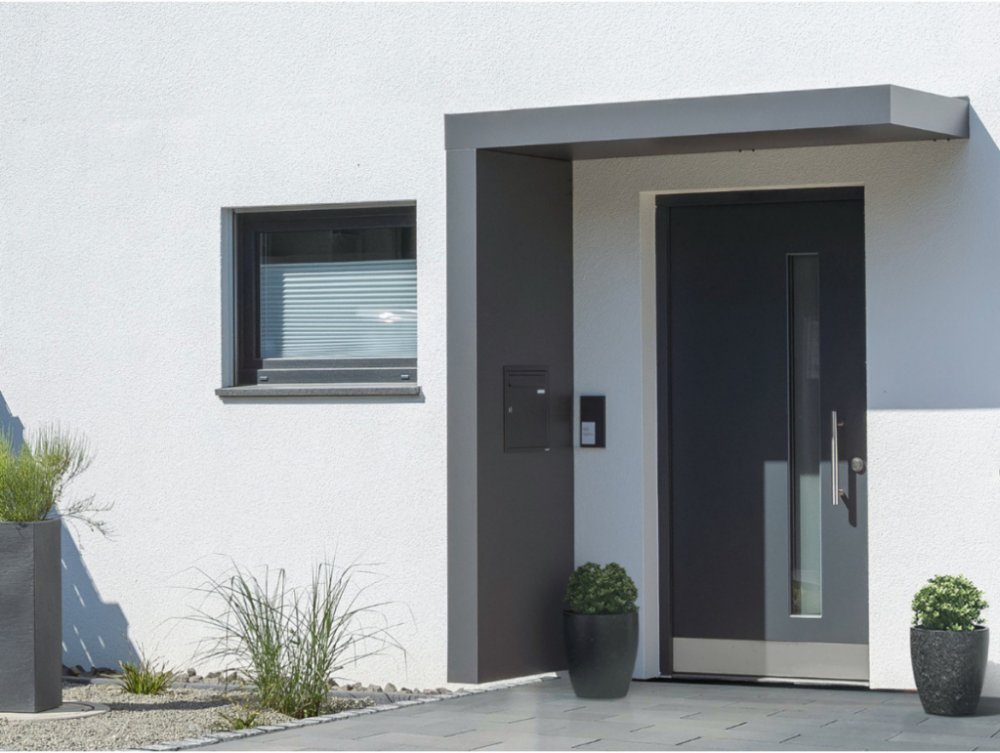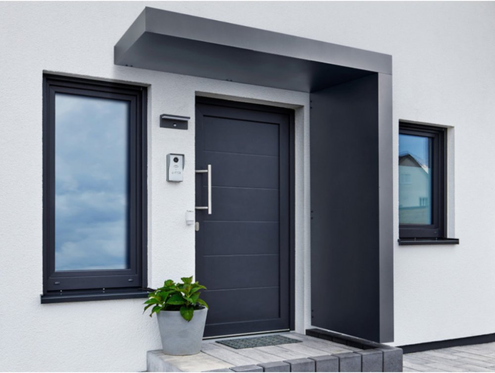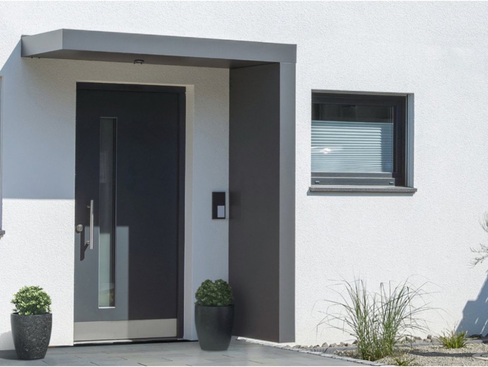 Vchodová stříška Guttavordach BS/B PLUS LED strip - Druhá generace moderní a stylové vchodové stříšky s boční stěnou, která propujčí Vaší nemovitosti nezaměnitelný vzhled. Dostupné jsou v délkách 160 a 200 cm v antracitové barvě a variantou se senzorem pohybu.