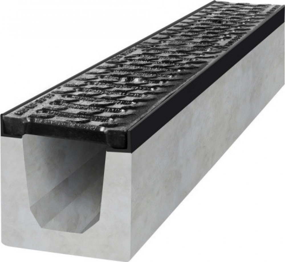 Odvodňovací žlab třídy nejvyšší únosnosti D400 (40 t) vyrobený z betonu třídy C35/45 výborně plní svoji funkci odvodnění zpevněných ploch u rodinných domů, vjezdů do garáží, vjezdů na parkoviště pro osobní i nákladní vozidla, podnikových nádvoří , nebo výrobních hal. Odvodňovací žlab umožňuje jednoduché spádování provrchu bez složitého členění. (mj=ks)