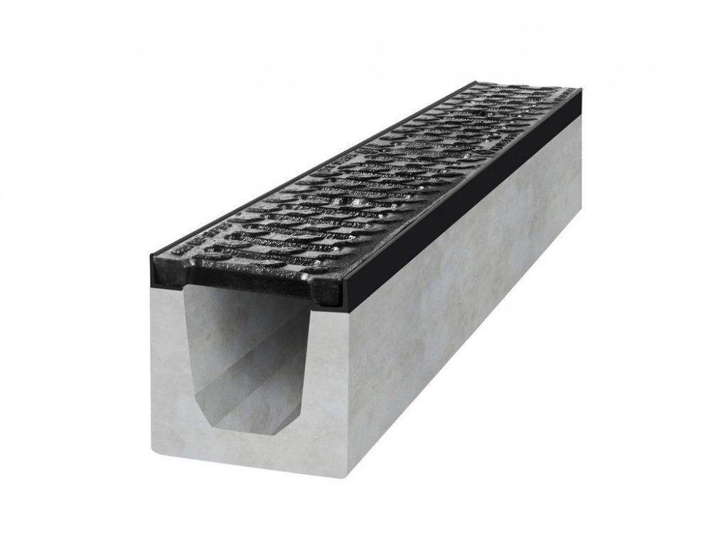 Odvodňovací žlab třídy únosnosti D400 (40 t) vyrobený z betonu třídy C35/45 výborně plní svoji funkci odvodnění zpevněných ploch u rodinných domů, vjezdů do garáží, vjezdů na p...