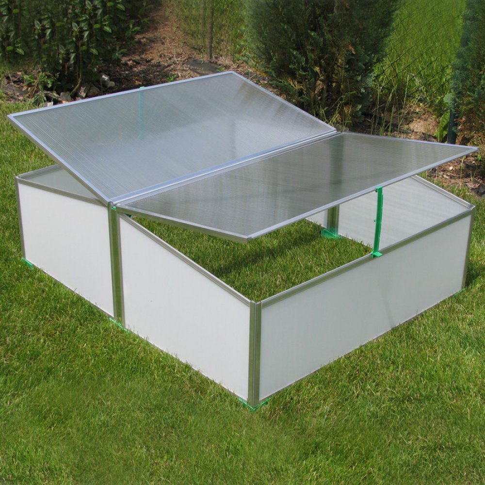 Toto pařeniště z polykarbonátu je ideální volbou pro jarní rychlení a předpěstování zeleniny i k pozdějšímu překrytí teplomilných rostlin. Pařeniště se šikmou odklápěcí stříškou je vyrobeno z hliníkových profilů a dutinkových polykarbonátových desek Guttagliss o síle 4 mm. Pařeniště se skládá z pevných obvodových stěn a odklápěcího vrchního dílu s aretací. Použitý dutinkový polykarbonát má lepší tepelněizolační vlastnosti oproti běžnému, jednoduchému sklu. Pařeniště z polykarbonátu Gardentec dodáváme v rozloženém stavu, doba sestavení je cca 10 min. Polykarbonátové pařeniště Gardentec je velice kvalitně zpracovaný produkt německé výroby.