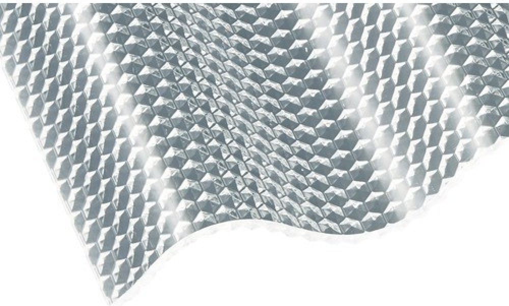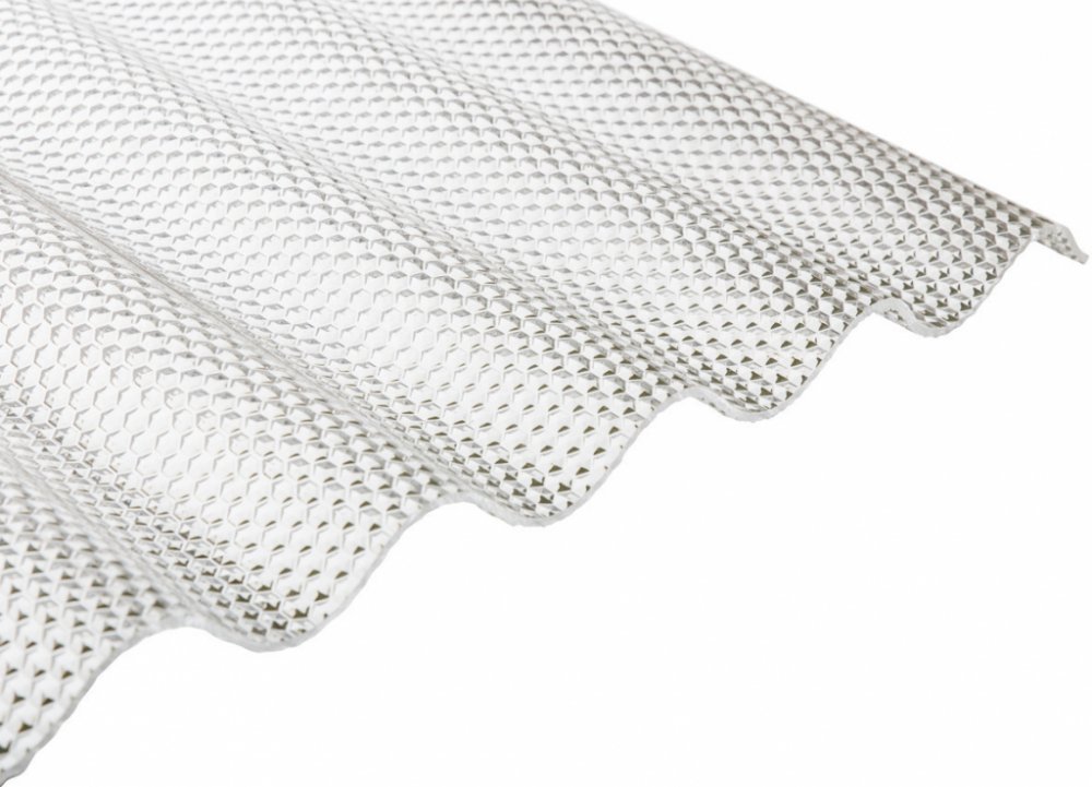 Prosvětlovací vlnitá deska z nejkvalitnějšího polykarbonátu, se speciální pyramidovou strukturou spodní strany je vyrobená v Německu. Speciální pyramidová struktura odkloňuje sluneční paprsky rovnoměrným rozkladem, snižuje tím oslnění a zachová světelnou propustnost. Jedná se o nejkvalitnější používaný plast pro prosvětlovací střešní krytiny a i proto je v západní Evropě používán nejčastěji pro za...