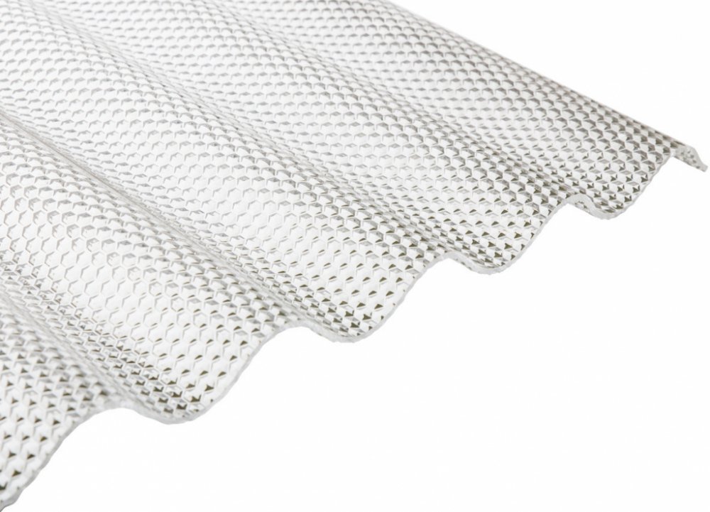 Polykarbonátová vlnitá deska Guttagliss WABE - čirá - Prosvětlovací vlnité desky vyrobené z polykarbonátu, se speciální pyramidovou strukturou spodní strany. Jedná se o nejkvalitnější používaný plast pro prosvětlovací střešní krytiny. Velmi vysoká životnost. Záruka 10 let.