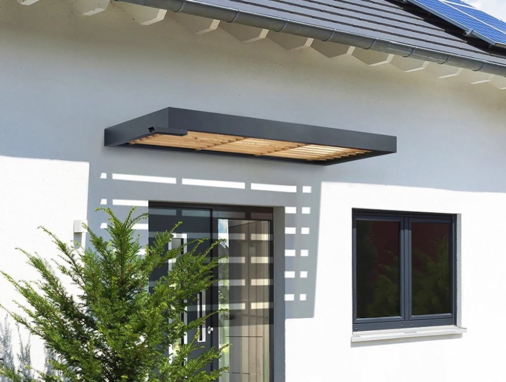 Vchodová stříška Guttavordach BS Timber-Line - volitelná RAL - Vchodová stříška ideálně kombinující hliník, dřevo a sklo s volitelnou RAL barvou v kvalitním německém zpracování a se zárukou 5 let. Jedná se pouze o samostanou vchodovou stříšku bez boční stěny.