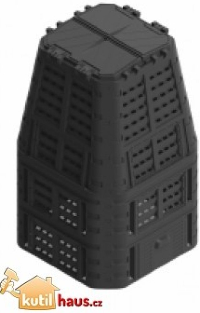 Gutta kvalitní zahradní kompostér pro uskladňování a kompostování veškerého zahradního biologického odpadu. Robustní konstrukce zajišťuje maximální pevnost a stabilitu, zárověň je koncipována tak, aby šla sestavit bez použití jakéhokoli nářadí. Kompostér je vyroben z kvalitního materiálu, který je vysoce UV stabilní a odolný vůči mrazu. Díky systému větracích otvorů je zajištěna výborná cirkulace vzduchu a vlhkosti uvnitř nádoby, což zajišťuje rychlé a kvalitní kompostování uskladněného bioodpadu. Variabilní systém pantů, umožňuje montáž víka na jakoukoli stranu nádoby. Kompostér je vybaven zámkem, kterým můžeme zajistit víko před náhodným otevřením vlivem větru či zvířete.