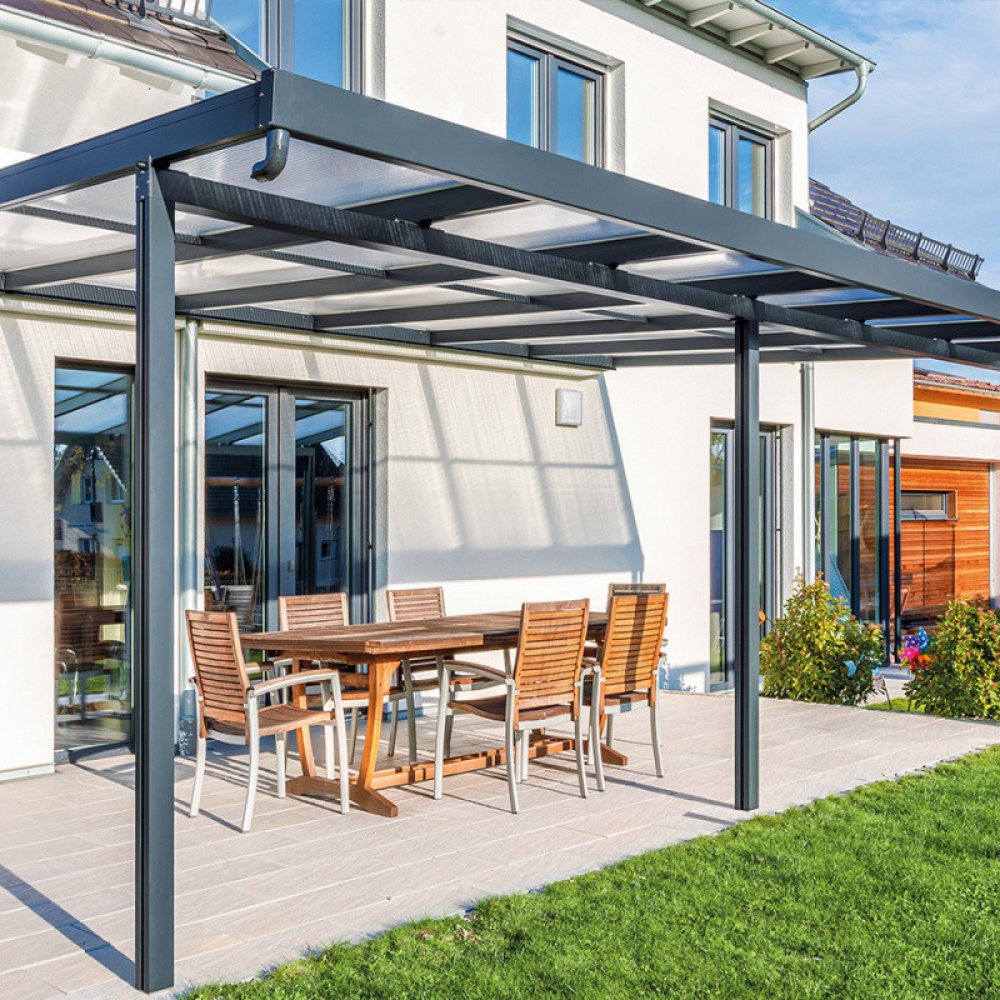 Zastřešení s volitelným sklonem od 5° až 20° při instalaci je odolné vůči sněhovému zatížení a krupobití. Montáž je velice jednoduchá a zvládne ji každý kutil, akrylové sklo je již z výroby opatřené klipy, kterými se jednoduše přicvaknou do hliníkového profilu. V porovnání s jinými pergolami, které standardně nabízejí zastřešení s polykarbonátem 6 mm, je tahle německá pergola s akrylovým sklem o tloušťce až 16 mm odolnější vůči krupobití. Moderní hliníková pergola je vhodná pro zastřešení terasy, verandy nebo jako přístřešek pro automobil.
