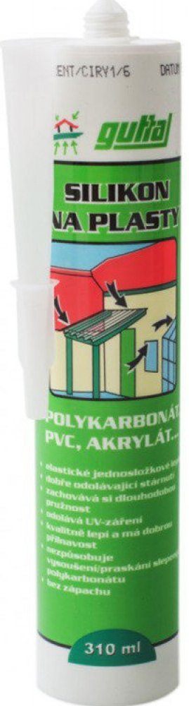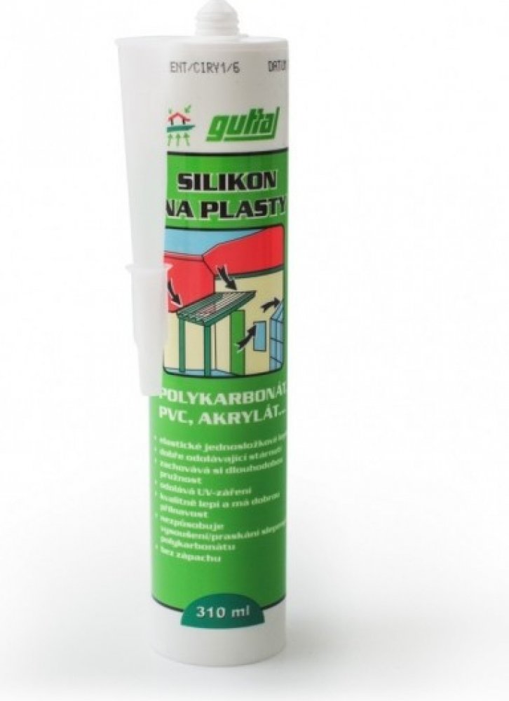 Silikon na plast je speciální jednosložkový vysoce odolný a stálý neutrální tmel. Používá se na utěsnění a doladění detailů střešních krytin z polykarbonátových desek. Obsažené látky působí preventivně proti vysoušení povrchu polykarbonátových desek. Silikon je odolný vůči UV záření slunečních paprsků. Vytvoří pevný a dlouhotrvající spoj na většině neporézních materiálech (polykarbonát, polyakrylá...