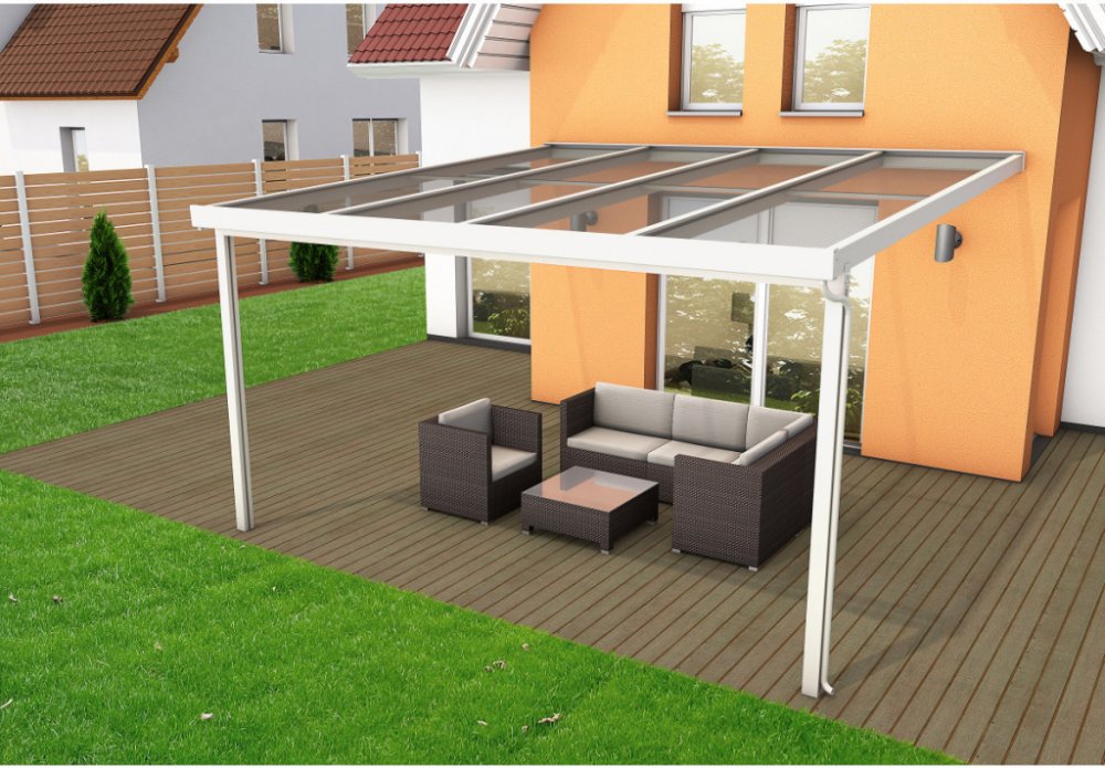 Hliníková pergola Terrassendach Premium - VSG sklo / bílá konstrukce - Prémiová pergola Gutta v nejvyšší kvalitě s VSG bezpečnostním sklem a konstrukcí z dutých profilů opatřených nástřikem v bílé barvě. Dostupná v široké škále rozměrů. Prémiová hliníková pergola Gutta v nejvyšší kvalitě uspokojí i nejnáročnější uživatele. Dostupná v široké škále rozměrů. Pergola je vyrobena z vysoce odolných hlin...