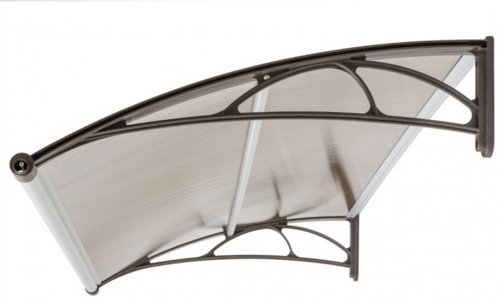 Vchodová stříška Valtellina - Oválné provedení stříšky nad vchodové dveře. Stříška je osazena polykarbonátem Guttagliss DUAL BOX 6 mm. Šířka vchodové stříšky 120 cm nebo 150 cm. Barva podpěr hnědá, černá a šedá. Italské stříšky nad vchodové dveře Valtellina jsou vyrobeny z kvalitního dutinkového polykarbonátu Guttagliss Dual Box o síle 6 mm. Zakončovací lišty jsou vyrobené z eloxovaného hliníku a konzole z pevnostního kopolymeru ve 4 barvách (hnědá, šedá, bílá, černá). Součástí dodávky jsou hmoždinky, šrouby a krytky. Vchodové stříšky Valtellina jsou kvalitním evropským výrobkem vyznačující se dlouhou životností a vysokou odolností proti krupobití. Velmi snadná montáž stříšky ideálně ve dvou lidech. Vhodné použití stříšek pro zastřešení vchodů, teras, výloh obchodů, balkonů a lodžií.