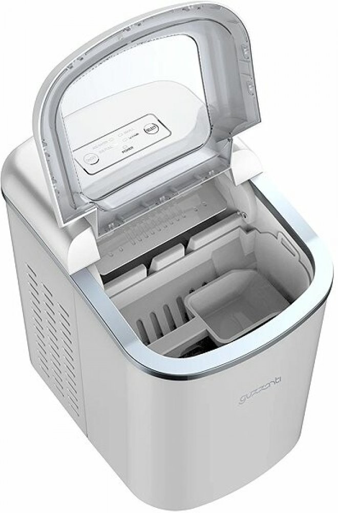 Výrobník ledu Guzzanti GZ 125W vyrobí až 12 kg ledových kostek během 24 hodin. Přístroj vyrábí dvě velikosti kostek, kapacita nádoby na vodu je 1,9 litru a kapacita nádoby na led je 0,7 kg. Je vybaven funkcí indikace prázdné nádoby na vodu nebo plné nádoby na led. Výhodou je průhledné víko, které umožňuje vizuální kontrolu procesu výroby ledu. Snadnou manipulaci zaručuje vyjímatelná nádoba na led....