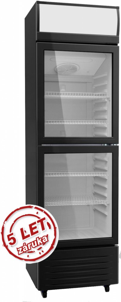 Volně stojící dvoudvéřová chladící vitrína s 4 drátěnými policemi. Vitrína má objem 325 l, dělená dvířka a zámek dveří. Profesionální chladnicí vitrína je ideální pro restaurace, hotely, penziony a malé obchody. Tento model je vhodný pro skladování potravin, nápojů a pro jejich prezentaci.