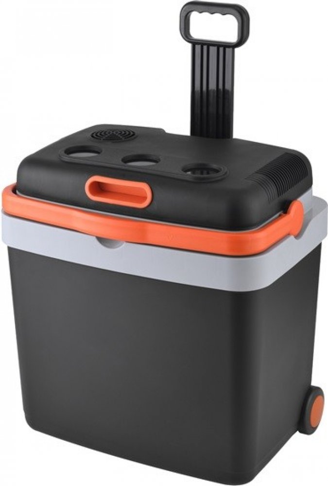 Chladící box rodinné velikosti vybavený kolečky a teleskopickým madlem