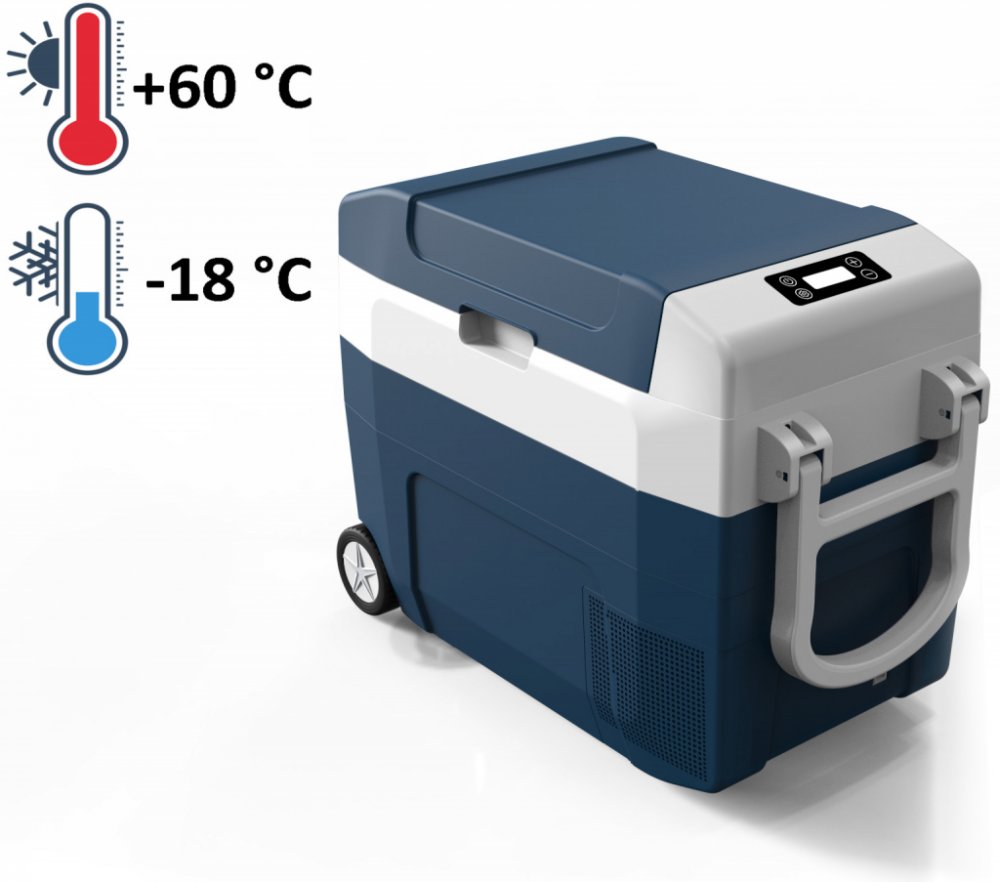 Zařízení chladí od mínus 20 °C do plus 20 °C a naplníte ji až do kapacity 38 litrů. O efektivní chlazení a mrazení se stará výkonný kompresor a vysoce kvalitní izolace. Zařízení pracuje při napájení 12/24 V nebo 220–240 V přes adaptér.