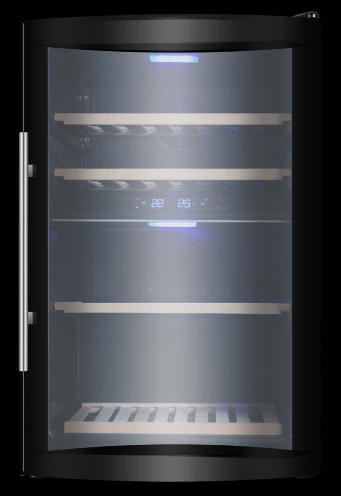 • dvířka ze zakřiveného dvouvrstvého temperovaného skla, které chrání víno před slunečním zářením a světlem