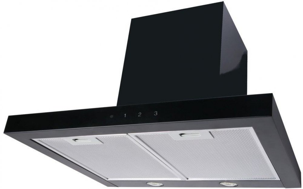 Moderní komínový odsavač par v černém provedení ve tvaru T.
