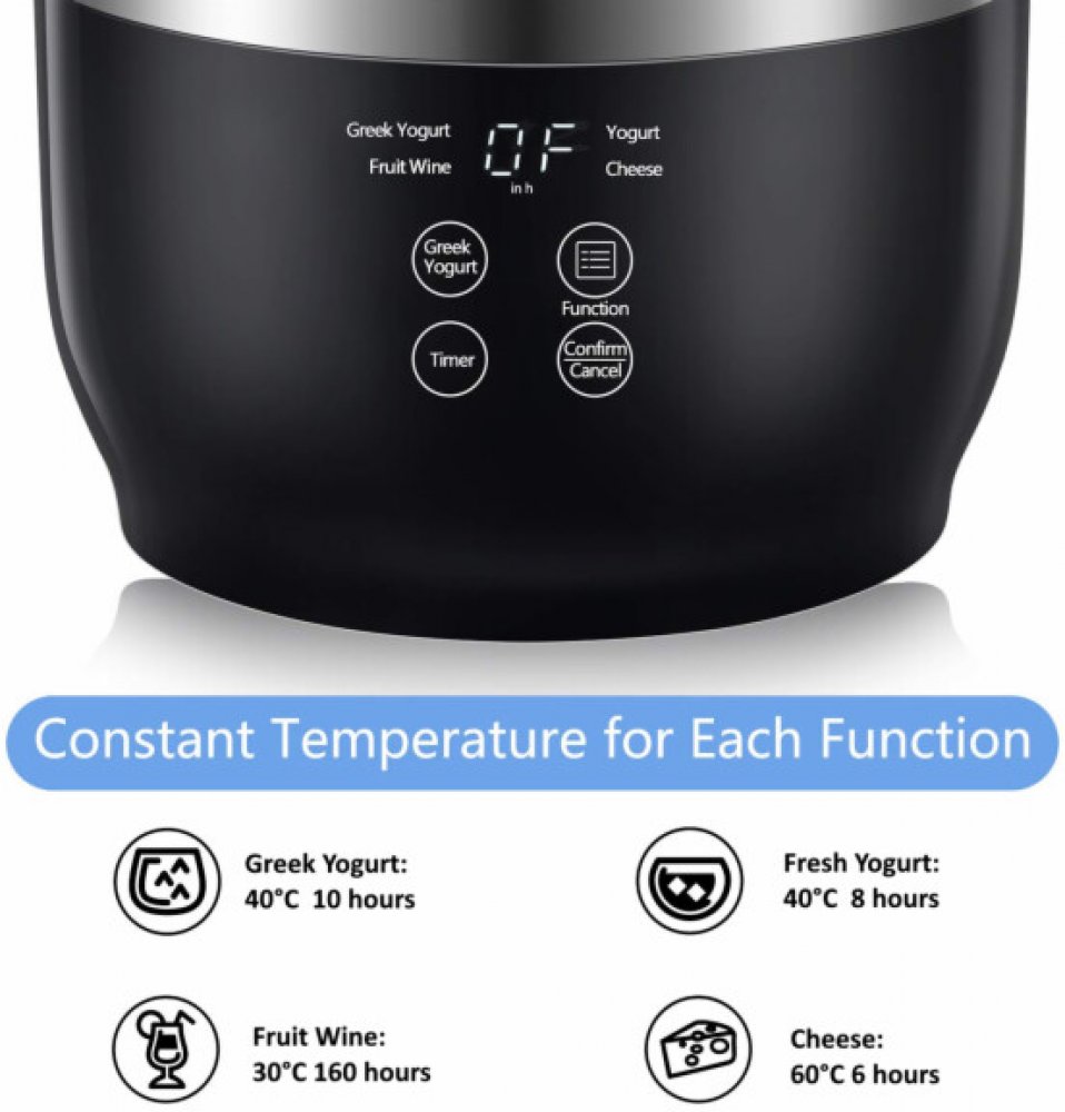 Domácí jogurt a smetanový sýr jsou velmi oblíbené produkty pro ty, kteří přikládají důležitost uvědomělé výživě bez nežádoucích přísad. Bez ohledu na to, zda si jej vychutnáte samostatně nebo jako doplněk k dezertům či vydatným pokrmům – možností je mnoho. S tímto multifunkčním výrobníkem si můžete doma připravit přírodní jogurt, smetanový sýr i bylinné výtažky z ingrediencí, které si sami zvolíte. V jedné dávce získáte např. až 1200 g jogurtu, který vydrží v lednici čerstvý minimálně jeden týden. Jogurtovač má navíc čtyři přednastavené programy. Spotřeba energie je velmi nízká a zařízení se velmi snadno ovládá. Jedná se o velmi všestranný spotřebič, který se perfektně hodí do každé domácnosti s důrazem na zdravou stravu.