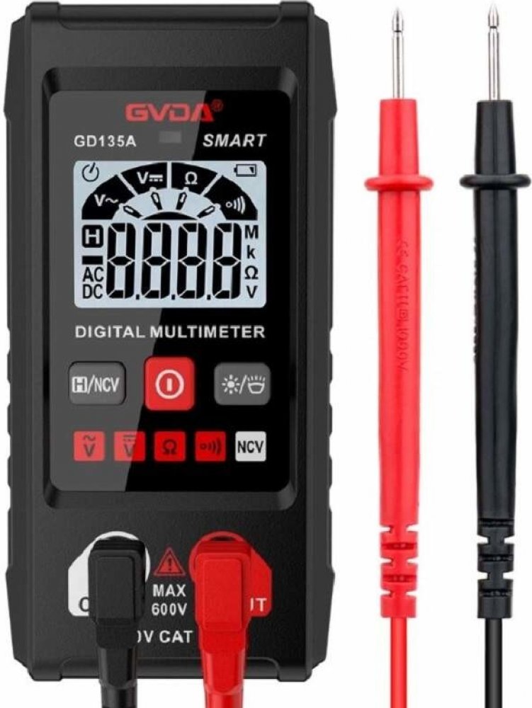 GD135A - Digitální multimetr, Indikace polarity vstupu: automaticky zobrazí "-", maximální zobrazení: 4000 (počet zobrazení), MAX napětí mezi svorkami a uzemněním: 600 V, vzorkovací frekvence: přibližně 3krát za sekundu, displej překročení rozsahu: nejvyšší poloha zobrazuje "OL", indikace slabé baterie: ano, pracovní prostředí: 0-40 °C, relativní vlhkost