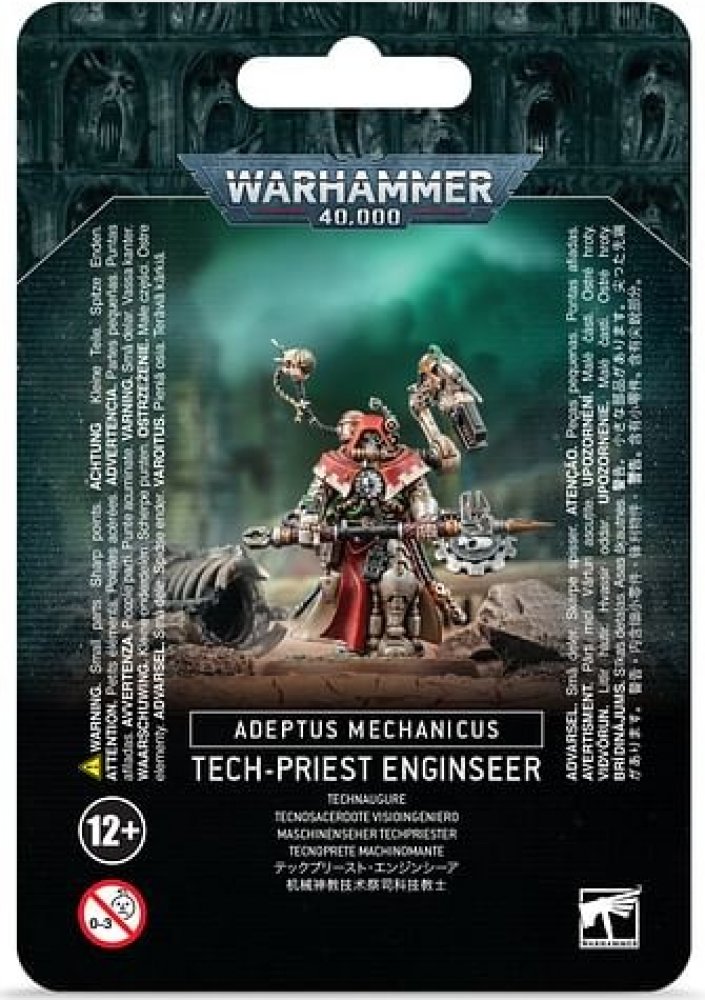 Sada Warhammer 40000: Astra Militarum Tech-Priest Enginseer obsahuje 1 plastový model Tech-Priest Enginseer. Model není nabarvený ani zkompletovaný.