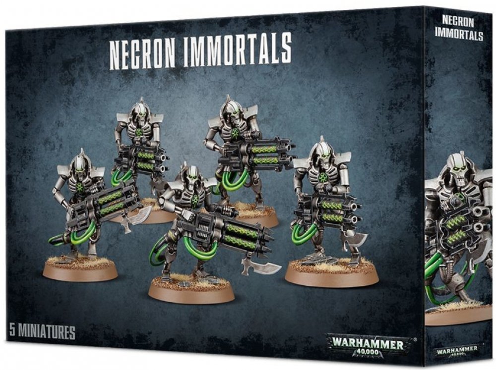 Tato vícedílná plastová sada obsahuje 80 dílů, pět 32mm podstavců a dva předávací protokoly pomocí nichž lze sestavit pět Necron Immortals, či pět Necron Deathmarks.