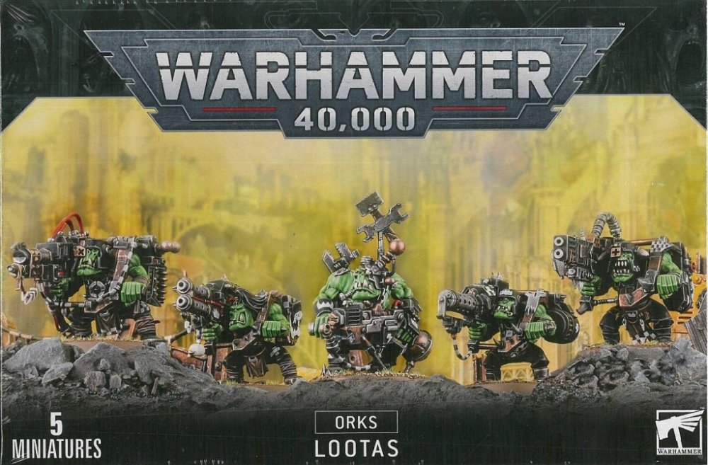 Sada modelů Orkz Lootas obsahuje 5 miniatur včetně 32 mm podstavců. Lze složit jako Lootas nebo Burna Boyz. Modely jsou nesložené a nenabarvené.