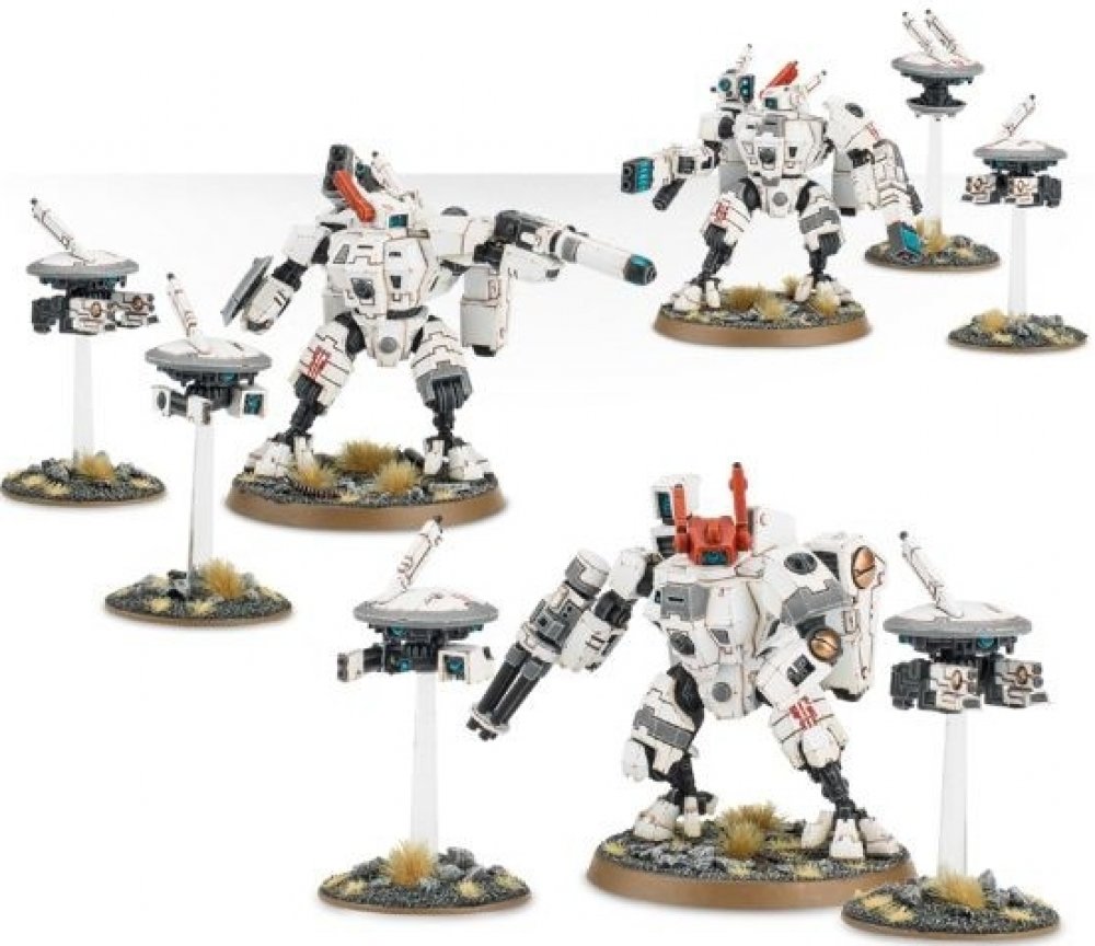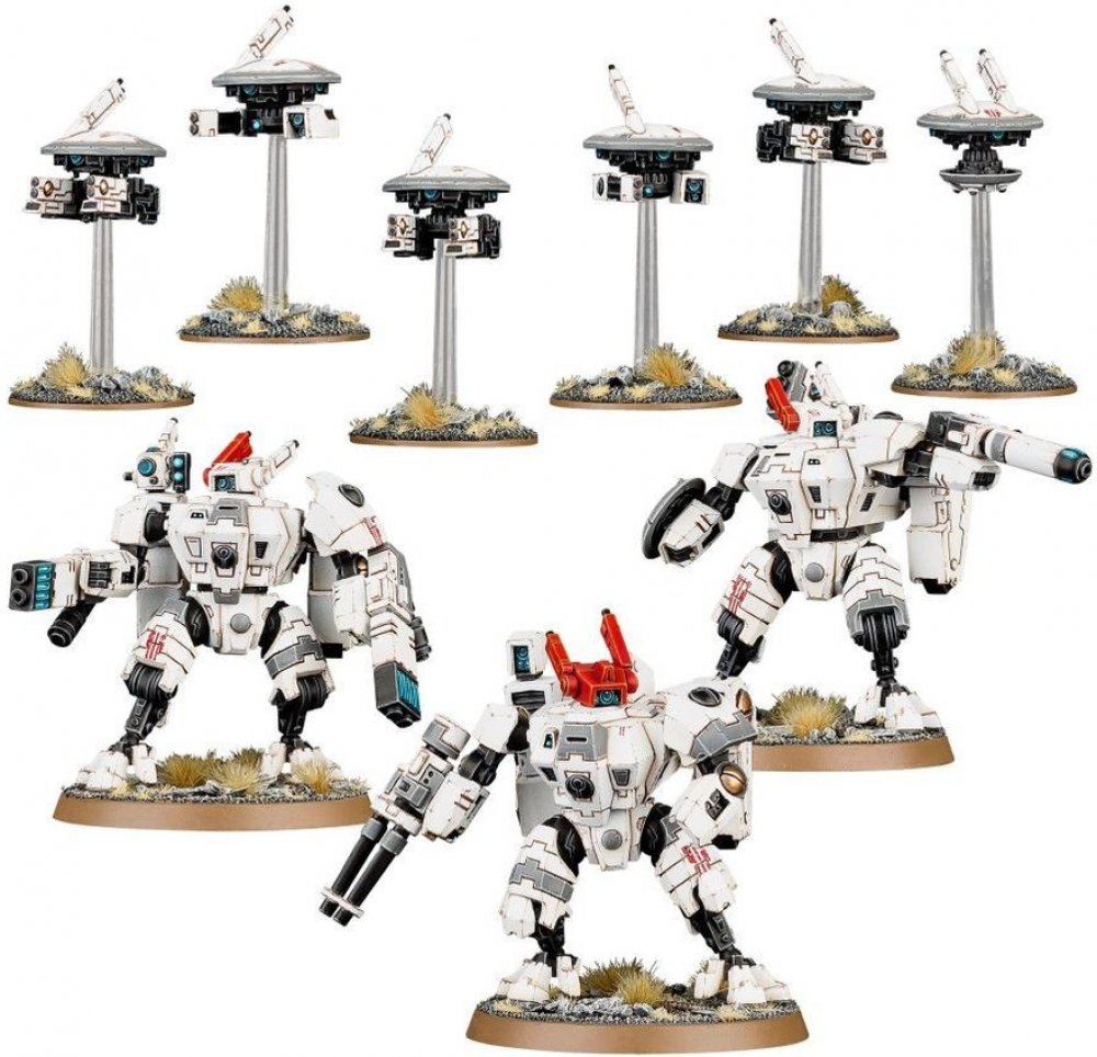 XV8 Crisis Battlesuit je ikonickým ztvárněním technologického pokroku a vynalézavosti T'au. Je radost sledovat battlesuit v bitvě v akci - pokud tedy nejste jeho cílem. Crisis Battlesuits se přibližují k nepřátelům překvapivě rychle na tryskách svých repulzorových motorech. Jakmile se přiblíží tak vystřelí z čeho můžou a následně v mžiku odskáčou pryč. Pilotování mohou být jen těmi nejlepšími T'au válečníky, kteří musí strávit roky na frontě, aby je někdo mohl považovat za piloty hodné těchto battlesuitů. Jsou vysazeni v horní atmosféře, a do řad nepřátel tak udeří jako přílivová vlna. XV8 Crisis Battlesuit je dokonalou rovnováhou palebné síly, rychlosti a odolnosti.Tato sada obsahuje 152 komponentů, ze kterých lze sestavit 3 XV8 Crisis Battlesuit. Jeden model lze sestavit jako Shas'vre. K dispozici je velký výběr zbraní - plasma rifles, flamers, fusion blasters, burst cannons, missile pods a shield generatory. Battlesuit doprovází šest dronů. Další model může být sestaven jako Iridium-class XV8-02 Crisis Battlesuit. Součástí balení jsou 3 50mm kulaté podstavce a 3 malé podstavce pro létající drony.