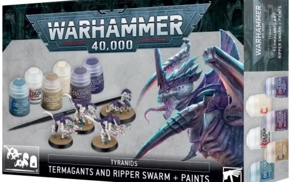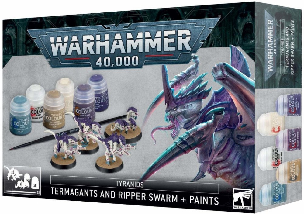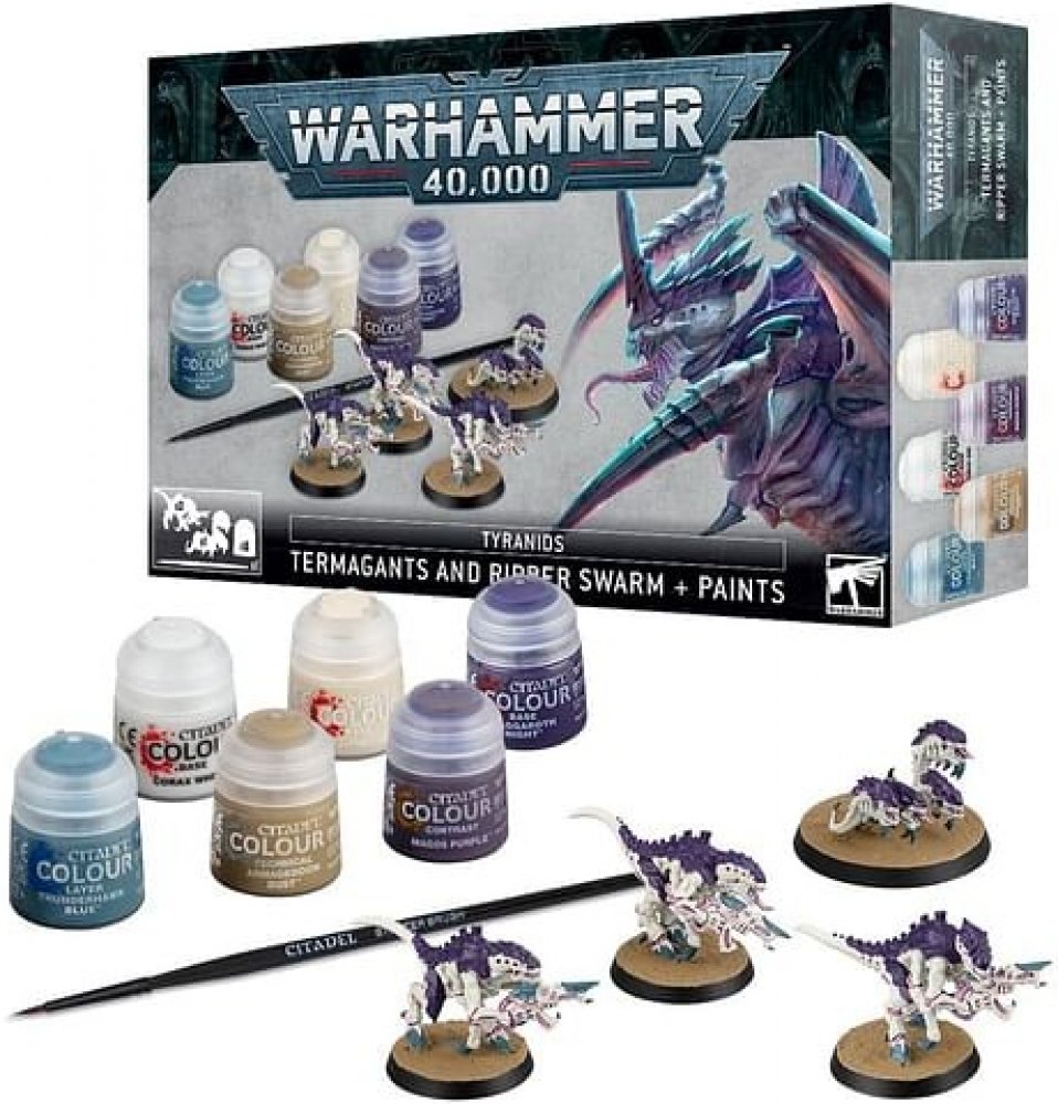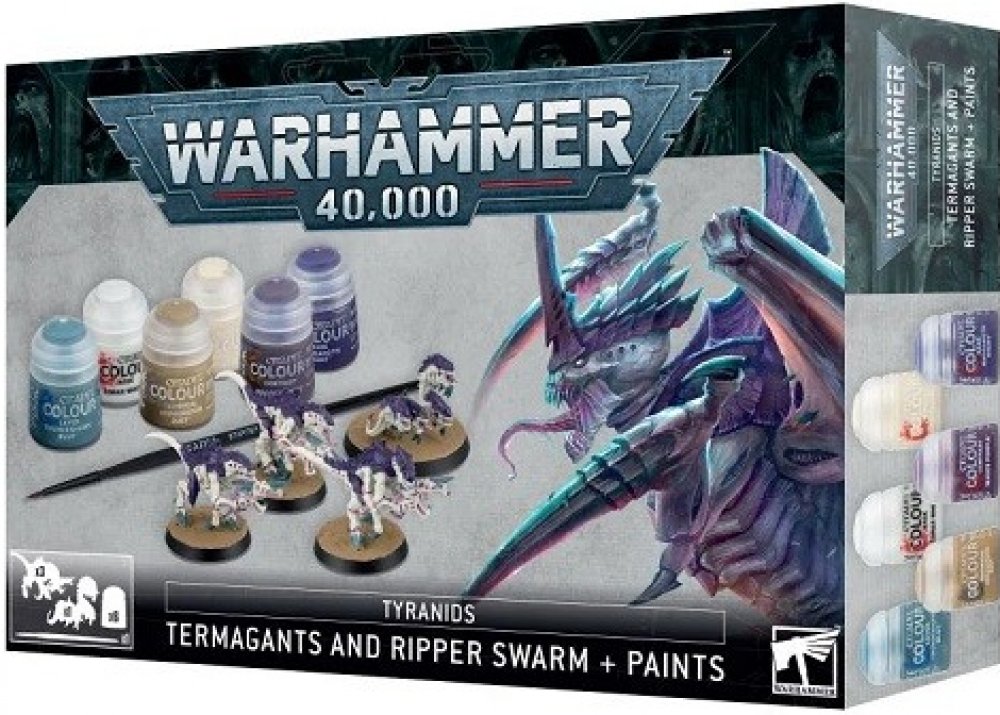 Tato krabice je ideálním způsobem, jak začít sbírku Tyranidů. Získáte tři plastové Termaganty, každého s odlišnou pózou, a navíc plastový roj Ripperů, všechny barvy, které potřebujete k jejich přípravě do boje, a štětec, abyste mohli začít malovat. Tyto modely se skládají push fit, k sestavení potřebujete pouze kleště- žádné lepidlo, žádný nepořádek.
