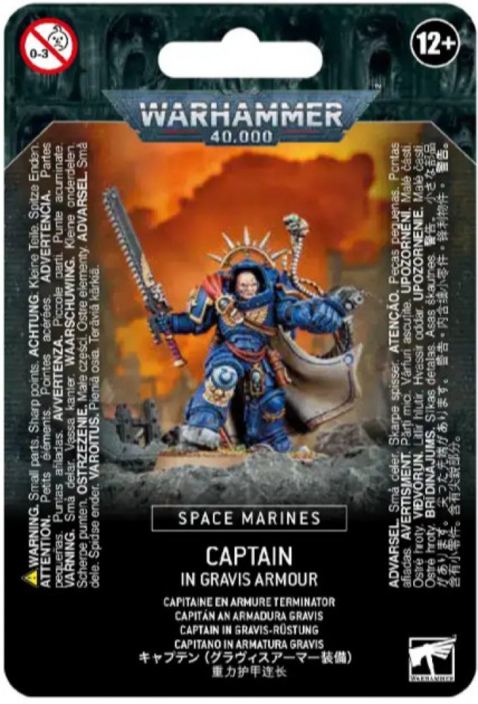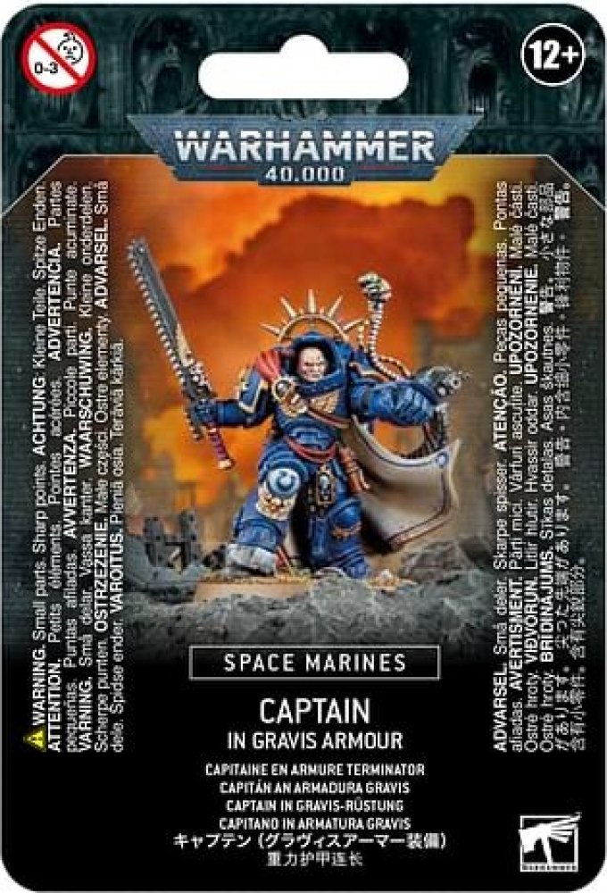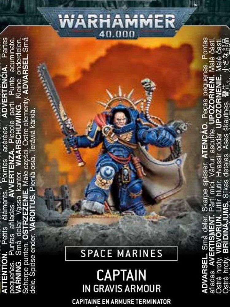 This kit is comprised of 25 plastic components, with which you can assemble 1 Space Marine Captain in Gravis Armour equipped with a chainsword, a power sword, or a powerfist, as well as a boltstorm gauntlet. It is supplied with a 40mm Citadel Round Base.
