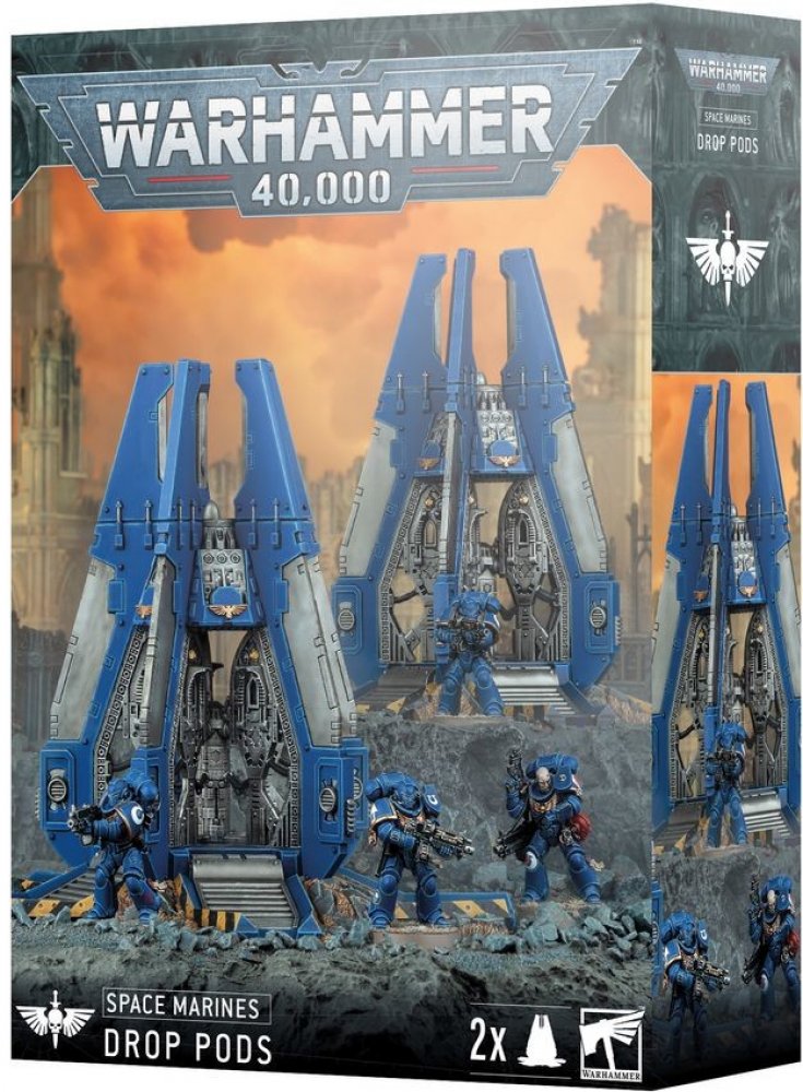 Sada obsahuje 2 plastové miniatury Space Marines - Drop Pods pro Warhammer 40000. Součástí balení je rovněž ikonografie pro jednotky Ultramarines, Space Wolves, Imperial Fists, Black Templars, Raven Guard, Dark Angels a Blood Angels. Sada je v angličtině, miniatury nejsou nabarvené ani složené.