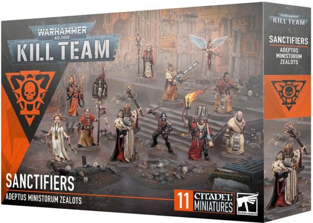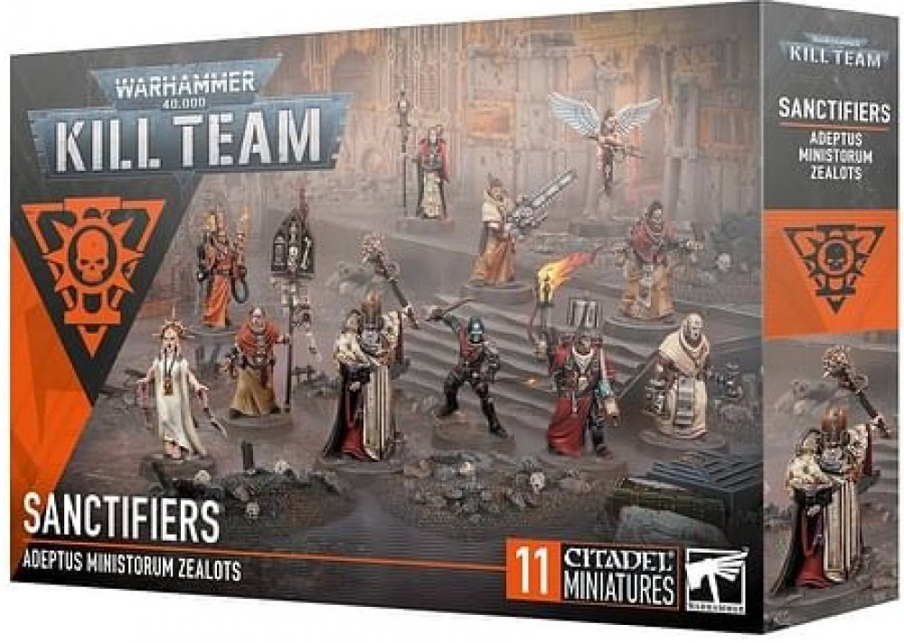 Tato vícedílná plastová sada obsahuje 11 miniatur Sanctifiers. Tyto fanatické operativce můžete nasadit v bitevní hře Kill Team, nebo je zařadit do armády Adepta Sororitas ve hrách Warhammer 40,000 – například jako podpůrnou jednotku s náboženským zápalem a brutální efektivitou.