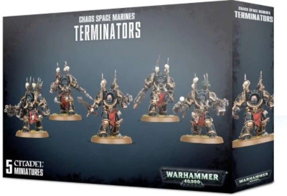 Sada obsahuje 5 plastových modelů Chaos Terminator sestavitelných v různých variantách výzbroje: součástí jsou 1x chain axe, 1x chainfist, 1x power sword, 1x power axe, 1x power maul, 2x power fist, 2x lightning claw, 1x heavy flamer, 1x reaper autocannon a 5x combi-weapon.Miniatury nejsou složené ani nabarvené.