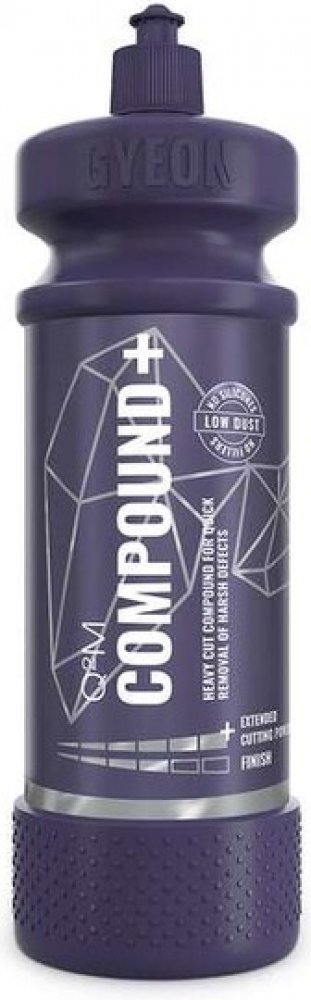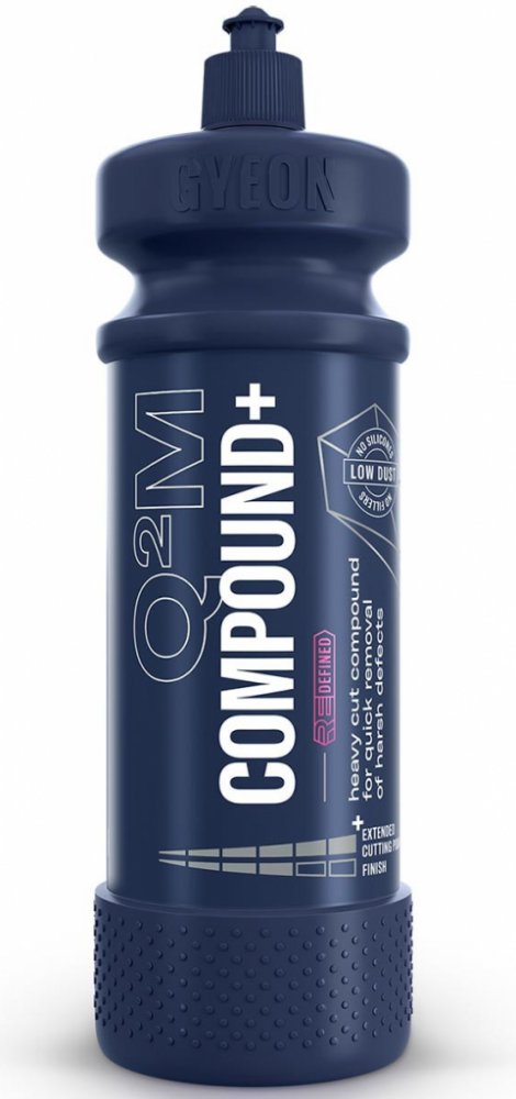 Brusná leštící pasta Gyeon Q2M Compound+ 1000 ml Q²M Compound+ je silná leštící pasta, která nabízí unikátní výsledky při leštění silně poškozeného laku při minimální prašnosti a s velmi dobrým finišem. Pomocí Compound+ velmi snadno odstraníte v jednom kroku veškeré hologramy. Compound+ je velmi odlišná pasta od jiných řezných past. Díky složení na vodní bázi můžete pracovat s nižšími rychlostmi a tím předcházet přehřívání. Compound+ má nejvyšší efektivitu při prvním opakování leštění. Nepracujte tedy s jednou aplikovanou pastou déle jak 45 s. Vysoká korekční síla Q²M Compound+ nabízí enormní efektivitu při odstraňování běžných defektů laku. Složení na vodní bázi a obsahu vysoce kvalitního japonského brusiva umožňuje rychlé a snadné odstranění drsných defektů. Navíc neobsahuje žádné silikony ani plniče, což proces korekce, leštění laku a přípravy značně zjednodušuje a zrychluje. Další vlastnosti leštící pasty Gyeon Q2M Compound+ 1000 ml Spotřeba: 15 až 40 ml na panel Řezné vlastnosti: 6/6 Lesk: 4/6 Objem: 1000 ml