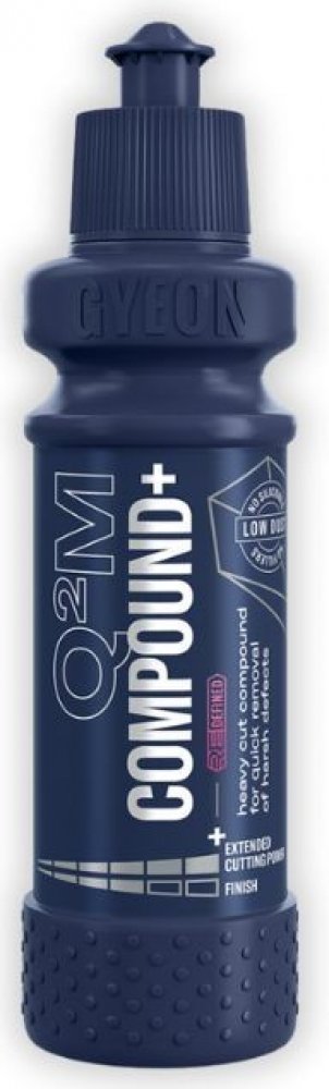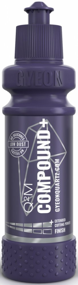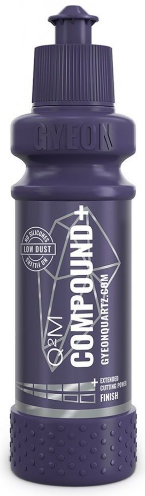 Q2M Compound+ je vysoce abrazivní leštící pasta, která nabízí rychlé a skvělé výsledky při strojním leštění silně poškozeného laku, navíc s velmi nízkou prašností. Pomocí Compound+ v kombinaci s tvrdým leštícím kotoučem snadno odstraníte silné i střední defekty laku, nebo s měkkčím kotoučem velmi snadno odstraníte v jednom kroku veškeré hologramy a mikroškrábance, projevující se při kontrolním nasvícení. Po jednokrokovém leštění dokáže zanechat pěkný finální lesk.