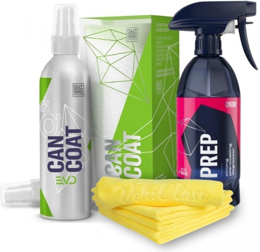 Gyeon Q² CanCoat EVO (200 ml) Keramický povlak ve spreji s obsahem SiO₂. Poskytuje až 12 měsíců ochrany. Vytváří vysoce hydrofobní vrstvu, která odpuzuje vodu, chrání lak před UV zářením, chemikáliemi i nečistotami. Vhodný nejen na lak, ale i na plasty, skla a kola.
