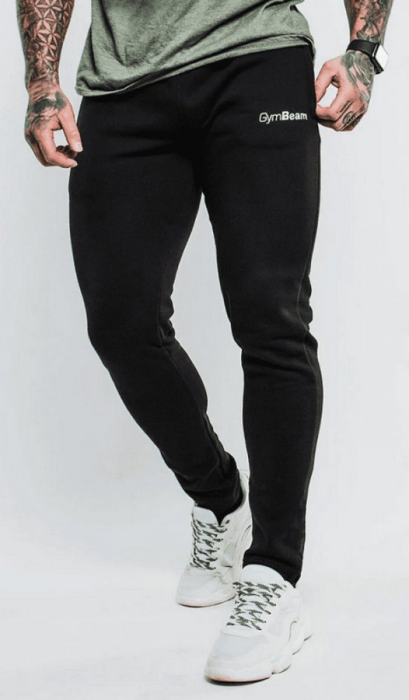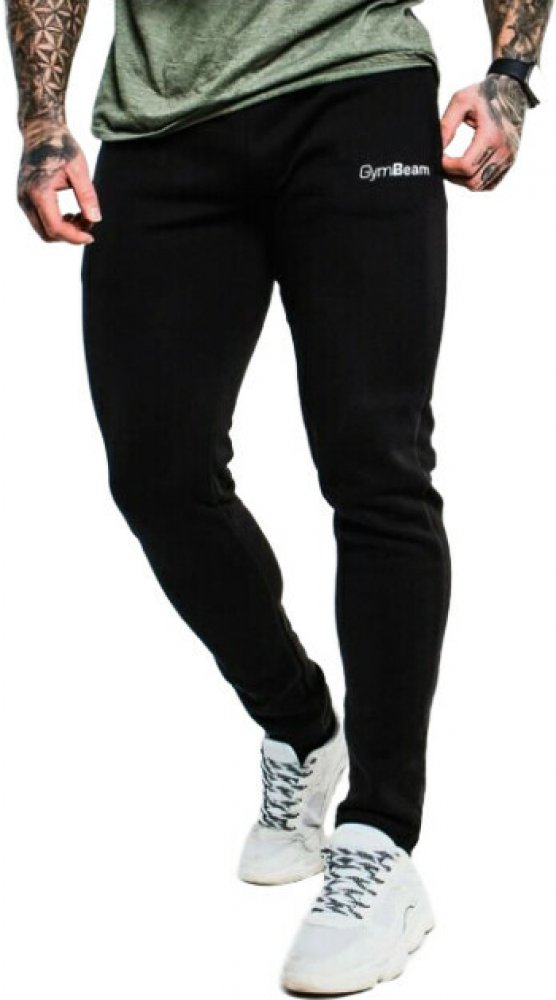 Tepláky v černé barvě s bílým minimalistickým nápisem Gym Beam na levé noze pod kapsou, obsahují po obou stranách kapsy se zipem, díky čemuž nepůsobí jen jako tepláky na cvičení, ale i na běžné nošení. Výborně vám sednou, ale využít můžete i šňůrku na zatahování v pase, která je na gumičku. Tepláky jsou vyrobené z kvalitního materiálu, který je tvořen z 80 % bavlnou a z 20 % polyesterem.