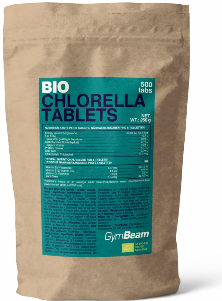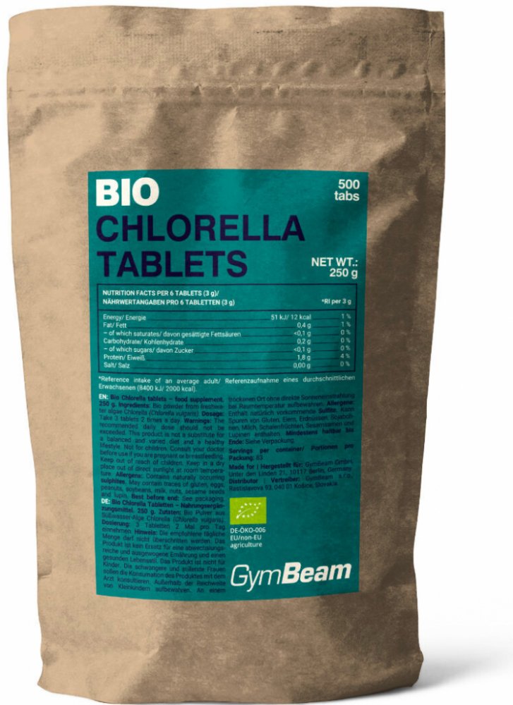 GymBeam 500 tbl tablety fyzická výkonnost unisex 1430 g GymBeam pro dospělé perorální bez příchutě chlorella sport a fitness 83 3000.0 mg 3 ks 2x denně Suché místo + pokojová teplota
