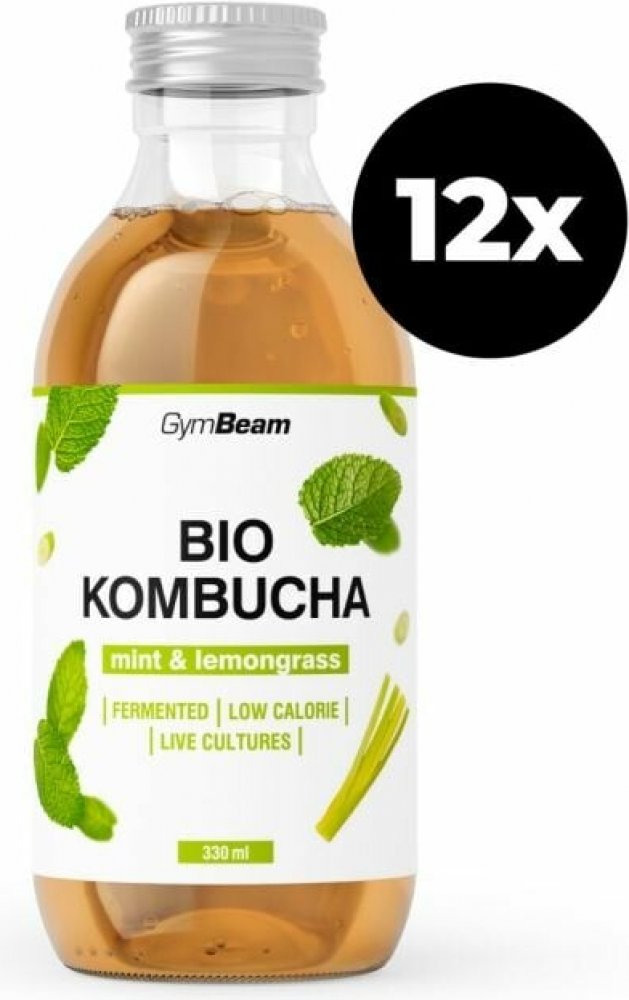 GymBeam BIO Kombucha máta & citronová tráva 12 x 330 ml
