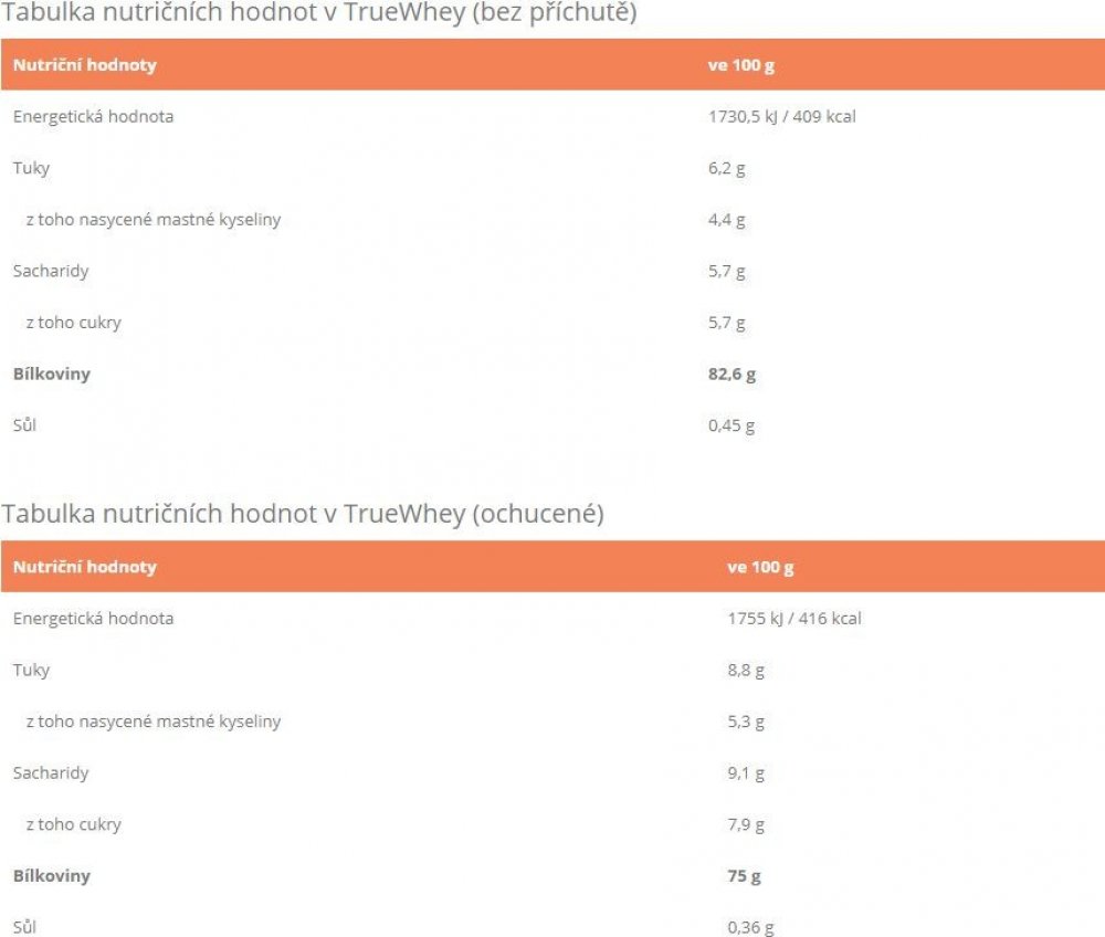 True Whey je čistý syrovátkový koncentrát (Whey Protein Concentrate), který se vyrábí šetrnými filtračními postupy, jako je cross flow filtrace. Výsledkem je lehce stravitelný protein se skvělou vstřebatelností a přirozeně vysokým obsahem biologicky hodnotných bílkovin. Díky tomu pomůže s růstem svalů i jejich udržením, což se hodí zejména během diety. Dalším bonusem je fakt, že podpoří i udržení normálního stavu kostí.