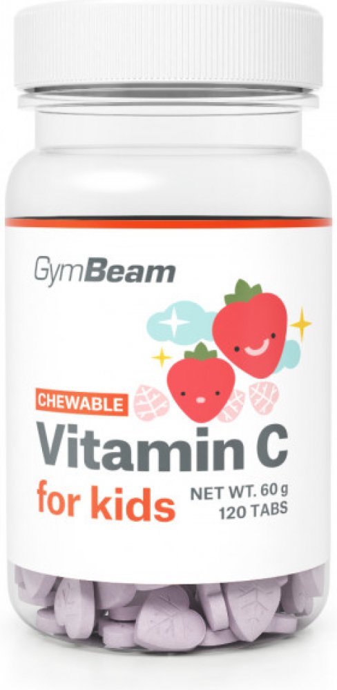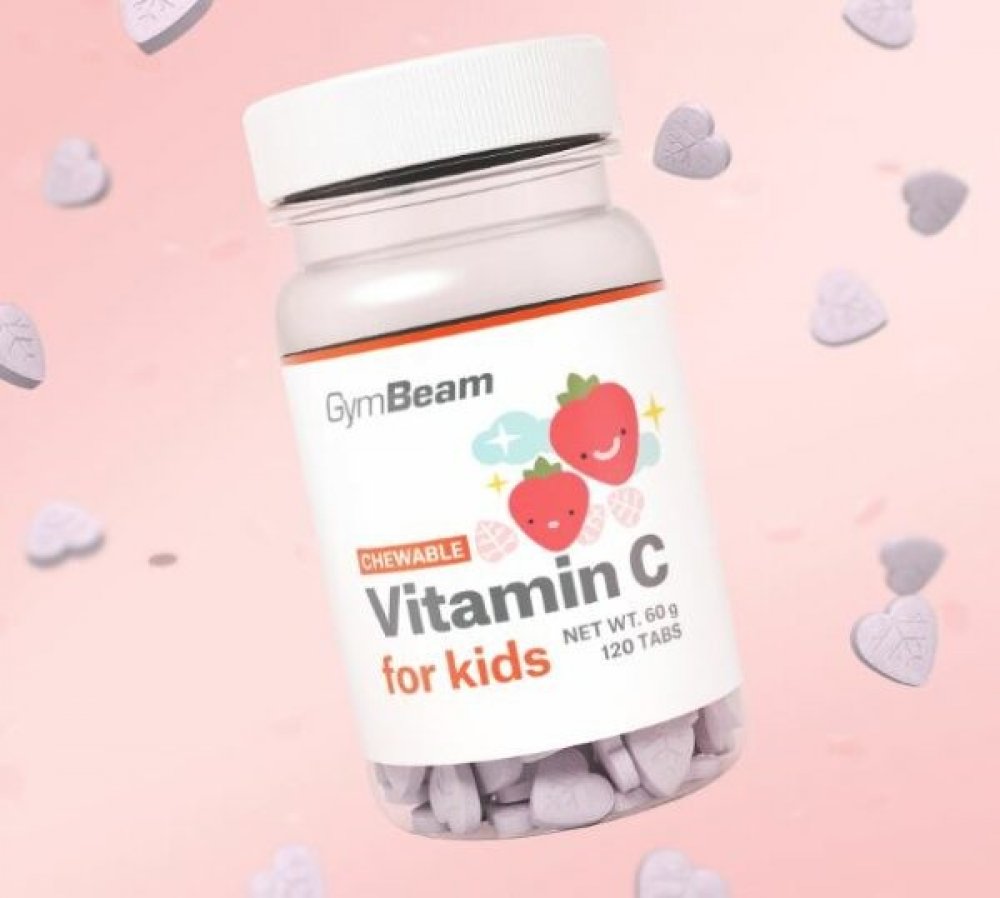 GymBeam Vitamín C tablety na cucání pro děti jahoda 120 tab